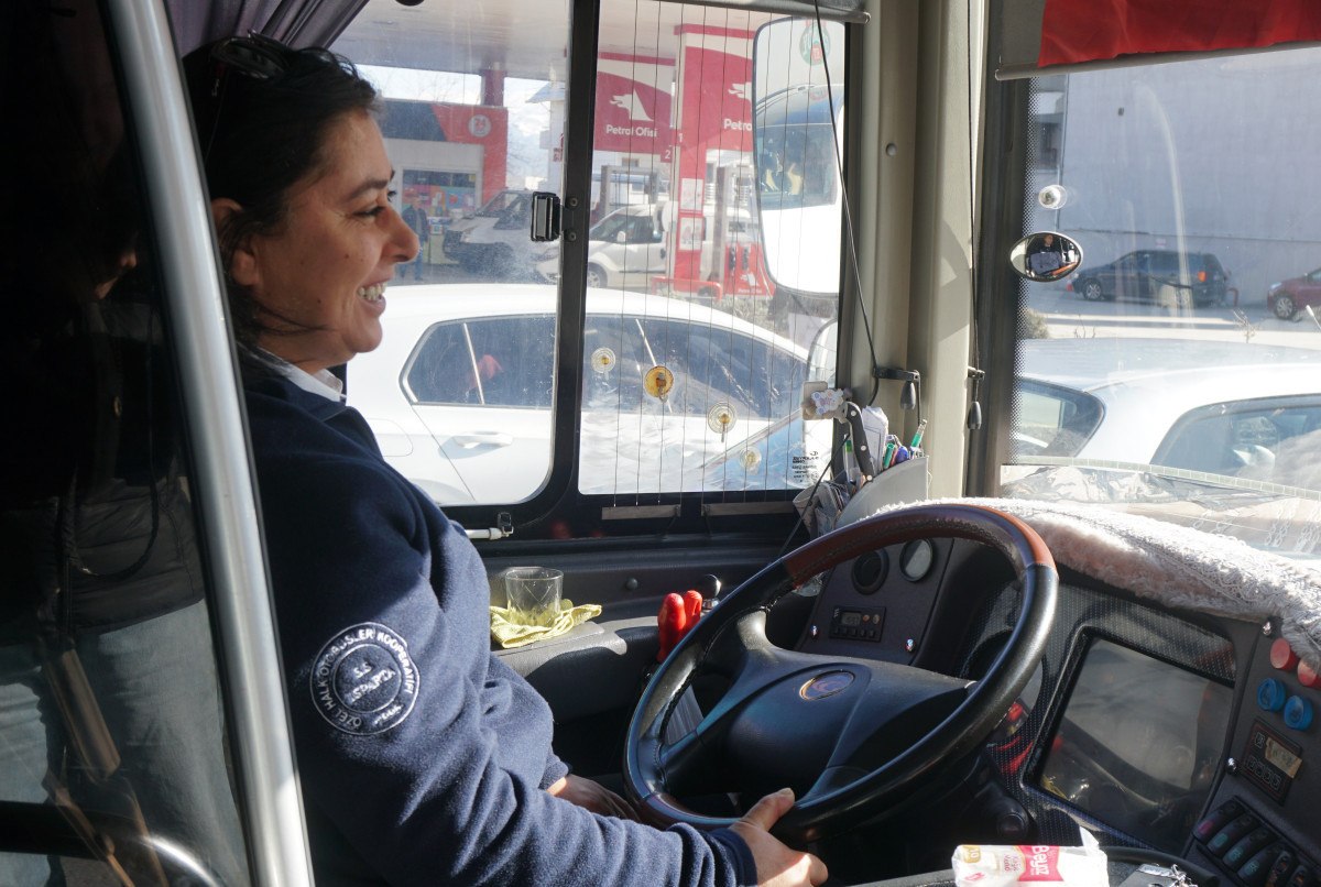 Çocukluğundan beri istediği otobüsün direksiyonuna oturmayı başaran Pınar Koçaktok, hayalini gerçekleştirmenin yanında kentin tek kadın otobüs şoförü olmanın da ayrıcalığını yaşıyor.