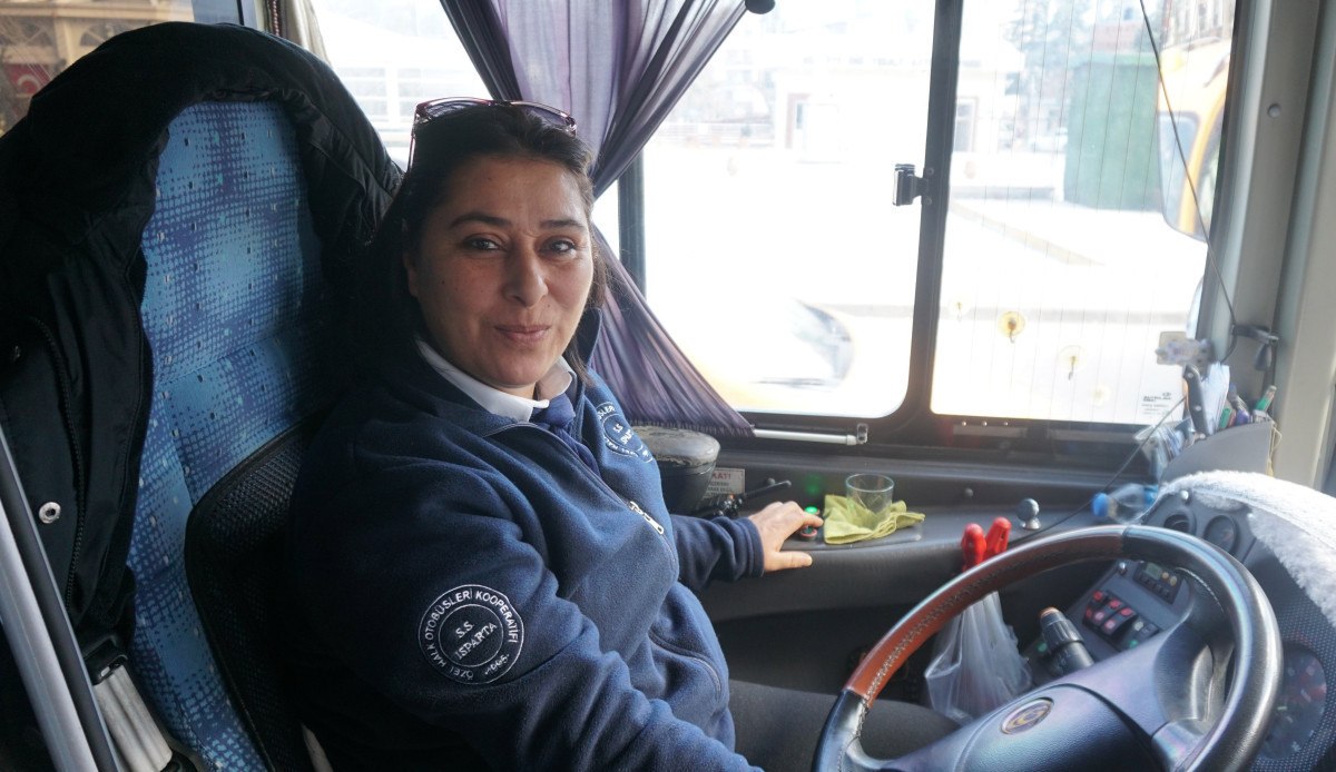 Isparta’da yaşayan 2 çocuk annesi Pınar Koçaktok, yıllardır hayalini kurduğu otobüs şoförlüğünü emekli olduktan sonra yapmaya başladı.