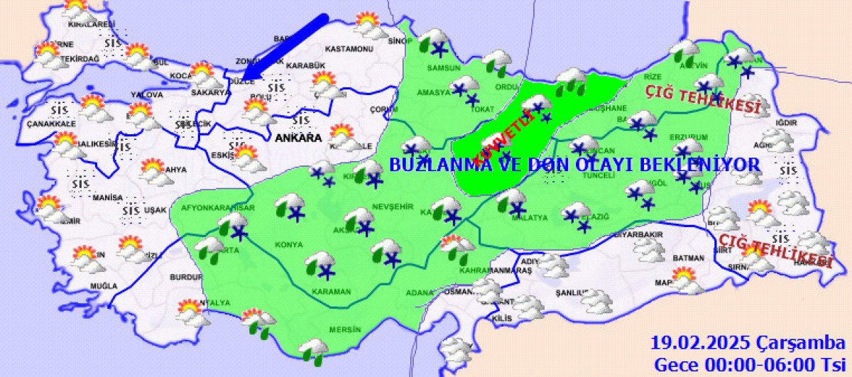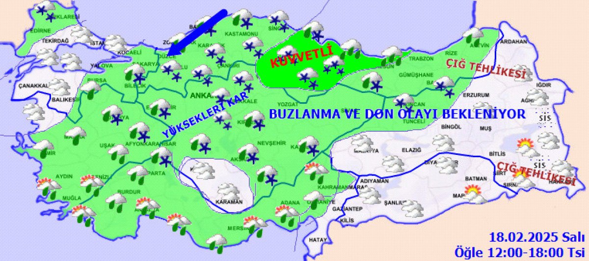Meydana gelebilecek kar yağışı, buzlanma ve don olaylarına karşı, Çevre, Şehircilik ve İklim Değişikliği Bakanlığı Meteoroloji Genel Müdürlüğü’nün hazırlayıp yayınladığı tahmin ve meteorolojik erken uyarıların takip edilmesi önem arz ettiği bildirildi” denildi.