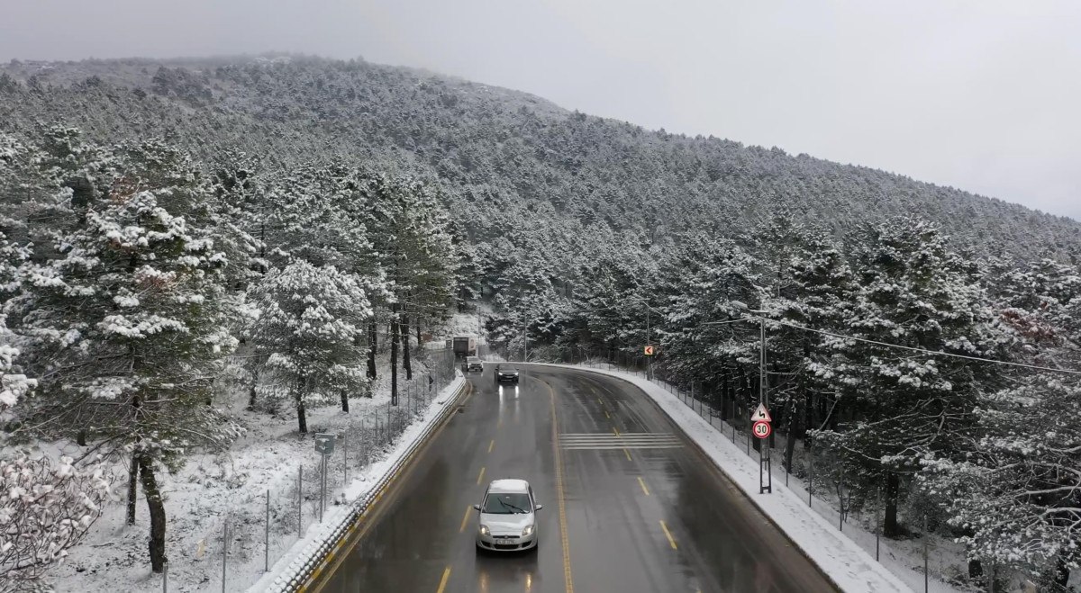Kar yağışının ardından Orman Caddesi’nde adeta kartpostallık görüntüler oluşurken, masalsı manzara dron ile havadan görüntülendi.
