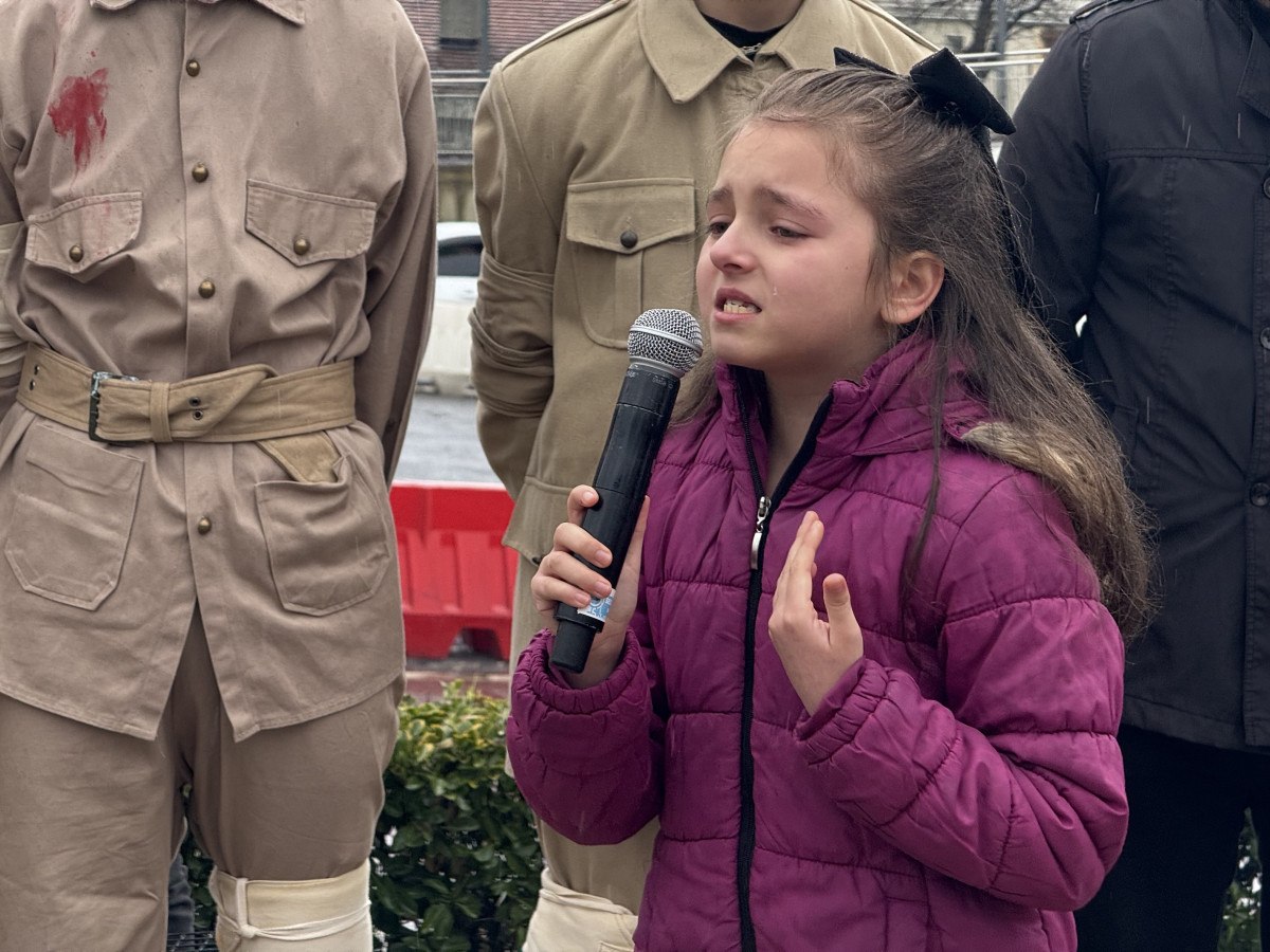 Törende gözyaşları içinde okuduğu şiirle herkesi duygulandıran ilkokul 4.sınıf öğrencisi Eslem Kuş, “Topluluğu görünce ağlayasım geliyor. Oradaki şehitlerimizin canı yandı evlatlarından ayrıldılar. Canlarını feda ettiler toprak için. Bunları düşünüyorum” dedi.