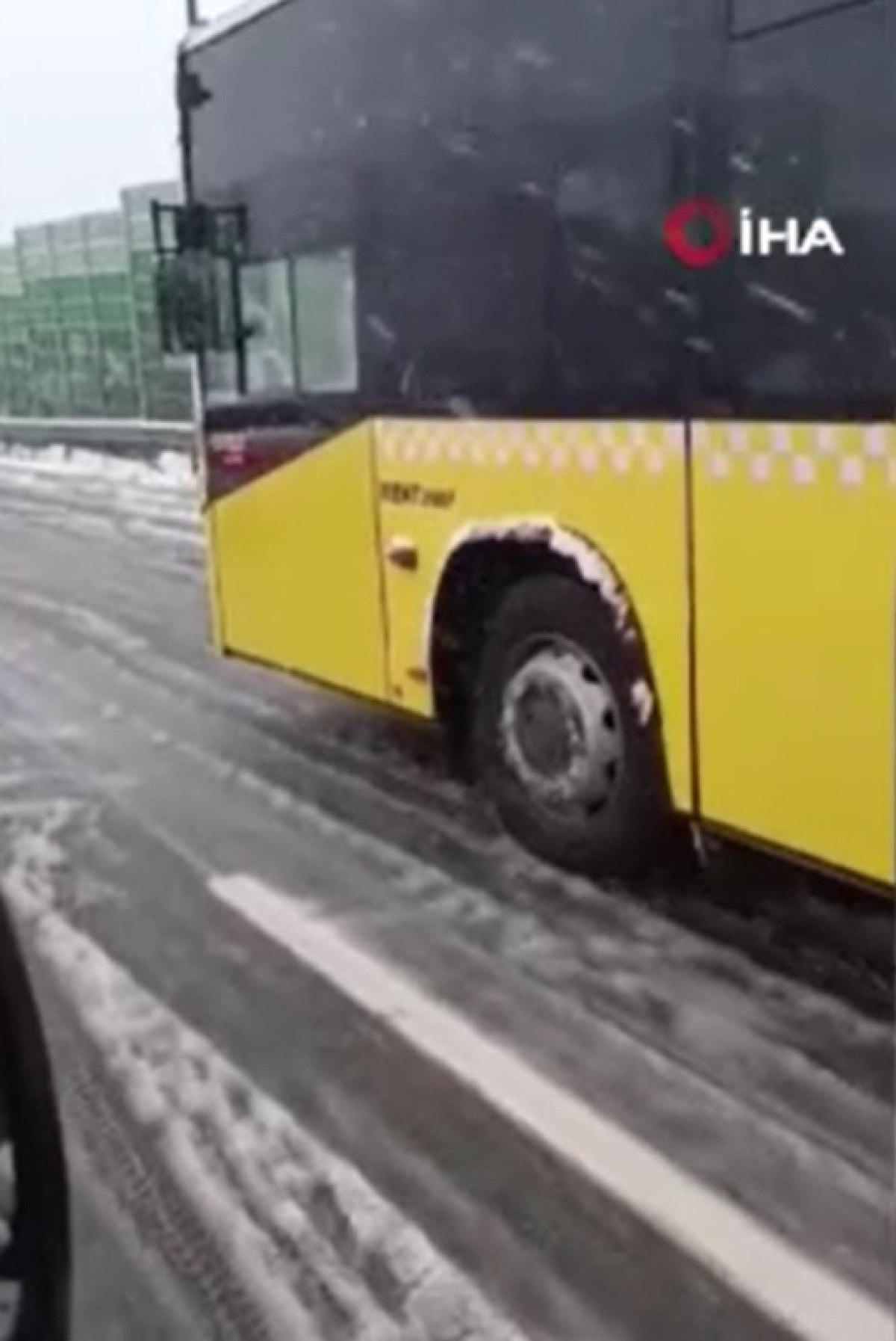Otobüsün güçlükle ilerlediği o anlar bir vatandaş tarafından cep telefonu kamerası ile kaydedildi.