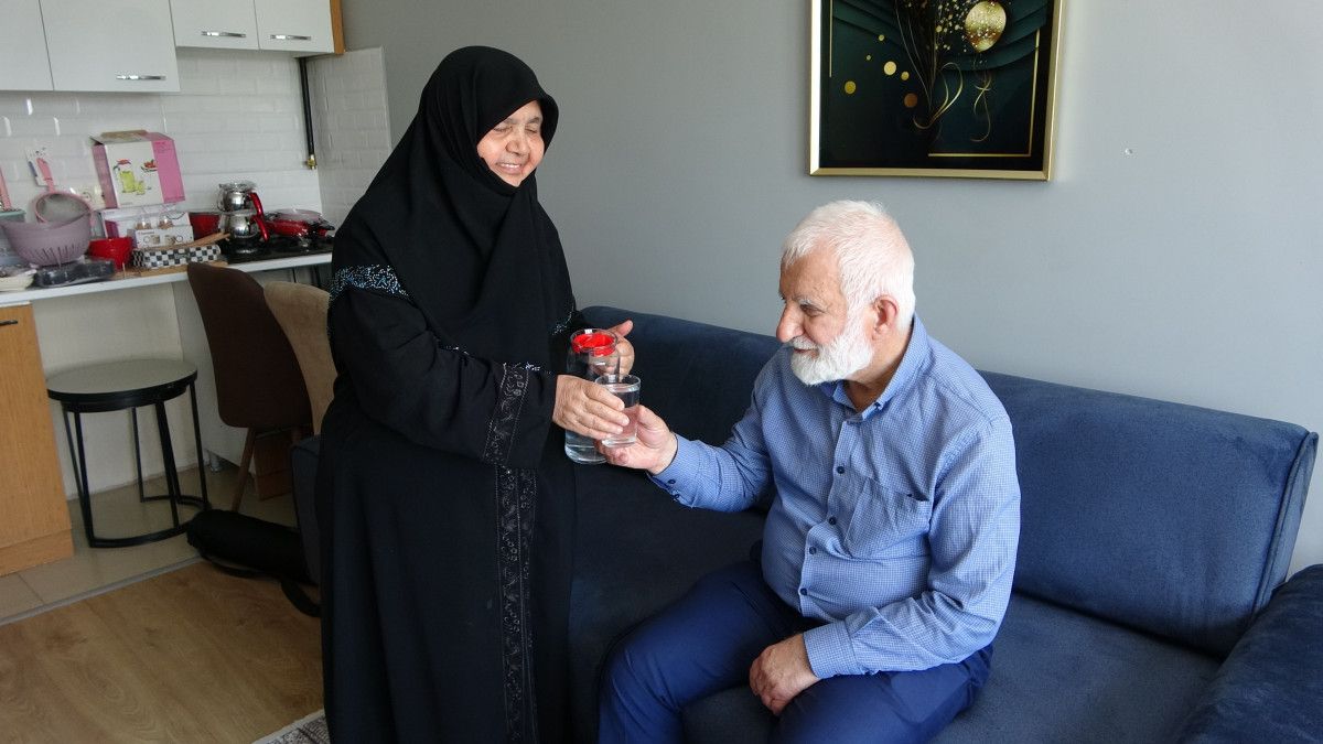 “Evlatlarımız sahip çıkmadı lakin Türkiye sahip çıktı. Allah razı olsun. Çok memnunuz, çok sevinçliyiz. Dünyaya yine doğmuş üzere olduk. Hayırseverlerden Allah razı olsun. Asansörümüz de var, hanım üç defa platinli diz ameliyatı oldu. Asansör olmasa çıkamazdı. Rabbim başımızı sokacak bir yuva nasip etti. Türkiye değişik bir yer. Daima sahip çıkıyor. Sevinçten konuşamıyoruz.”