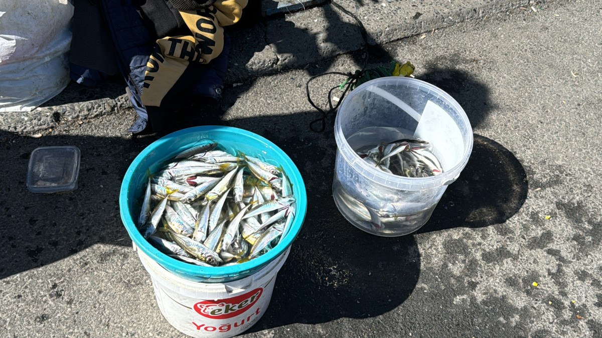 Emekliyim buraya gelip balık tutup satıyorum. Hem ziyaret hem ticaret yapıyoruz. Bu güzel havayı değerlendiriyoruz. Kafa dinlemeye geldik. Her sene gelirim. Balık olarak izmarit, istavrit ve sardalya var. Ben de izmarit ve sardalya tuttum. Allah bereket versin.