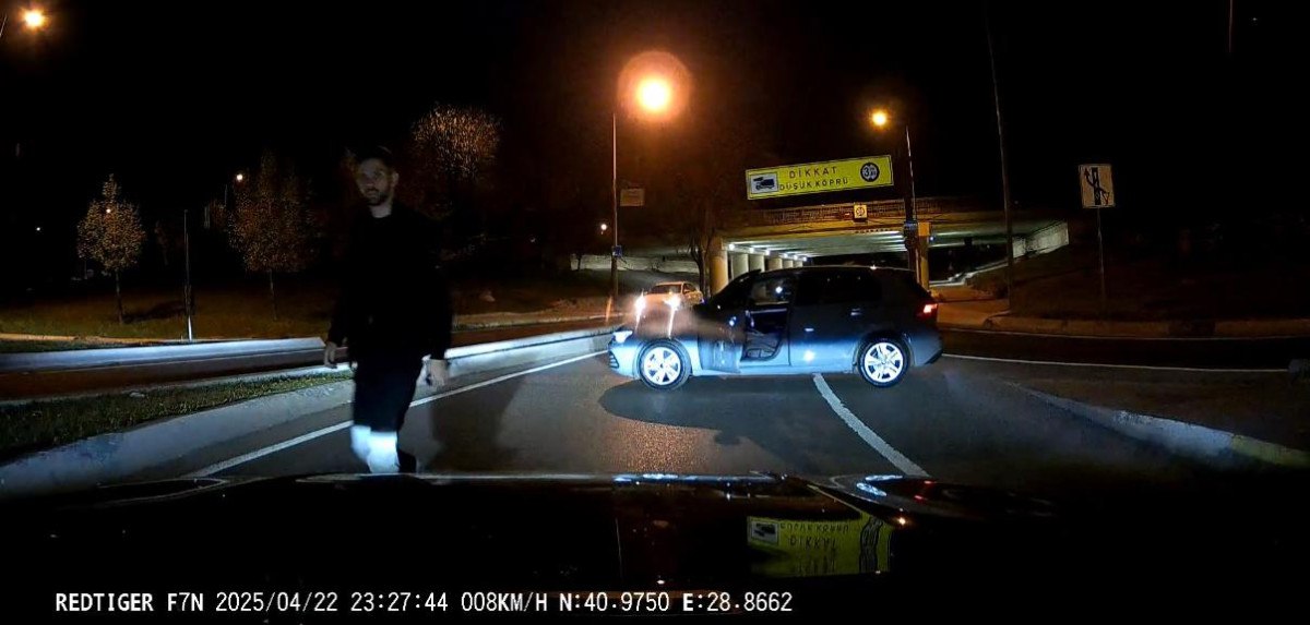 Olayın ardından aracıyla ilerleyen kadın sürücünün yolunu, ileride selektör yaptığı sürücü kesti.