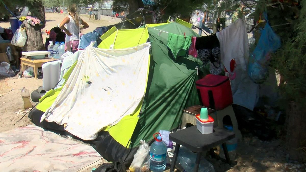 Sıcak havaların başlamasıyla birlikte yaklaşık 1 aydır plajda kurdukları çadırlarda kalan Fatma ve Gülşah isimli vatandaşlar, yaz sonuna kadar burada kalmayı planladıklarını söyledi.