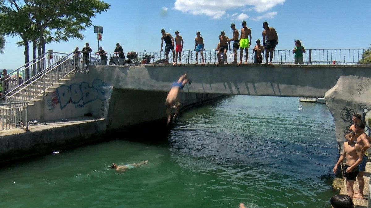 Ailesiyle plaja gelen Emin Kayseri, “Atlama yeri yok. Çocuklar atlıyor ancak taşlar var. Cankurtaranlar atlamamıza müsaade vermiyor.