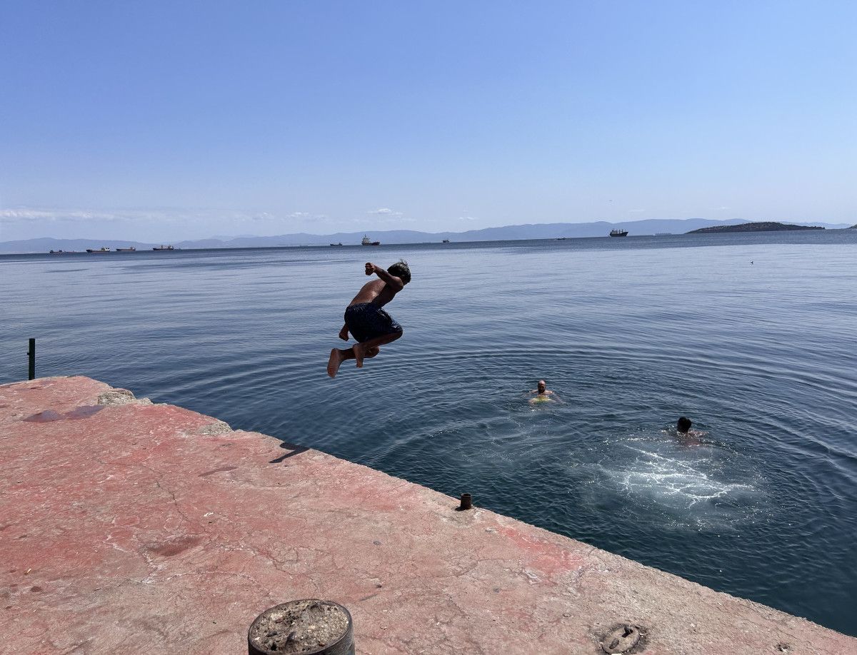 Denize girerek serinleyen vatandaşlardan Sezer Bekiroğlu, bu pozisyona sıklıkla geldiklerini ve keyifle vakit geçirdiklerini söz ederek, “Günümüz hoş geçiyor. Buranın suyu hoş ve pak, çocuklarla birlikte yüzüyoruz. Buradaki gölgeye sandalyelerimizi attık, suya girerek de serinliyoruz, sonra dönüp dinleniyoruz.