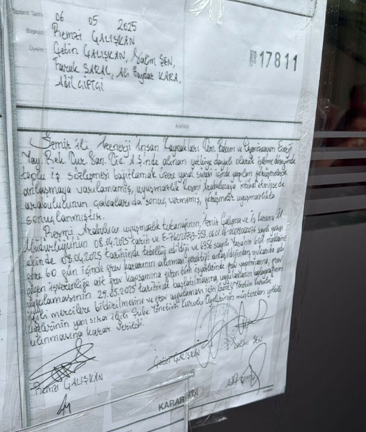Binlerce işçinin güvencesizlik altında tahlil beklediğini söyleyen Yılmaz, “Ne yazık ki sabrımız ve sağduyulu duruşumuz bugüne dek karşılık bulmamıştır. Daha evvel 9 Mayıs olarak ilan ettiğimiz grev ilan asma tarihini, maaş ödemelerinde yaşanılan külfetlerden ötürü 7 Mayıs’a çekmiş bulunuyoruz. Bu karar anayasal hakkımızdır” sözüne yer verdi.