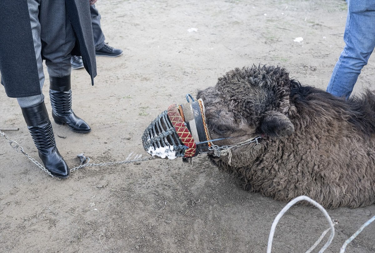 Müsabakalar öncesinde sahipleri tarafından alanda dolaştırılan develer, yapılan eşleşmeler sonrasında rakipleriyle mücadele etti.