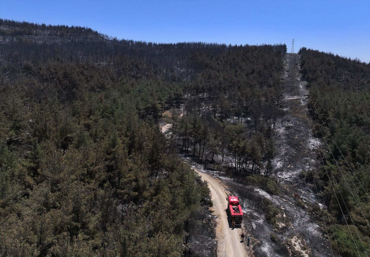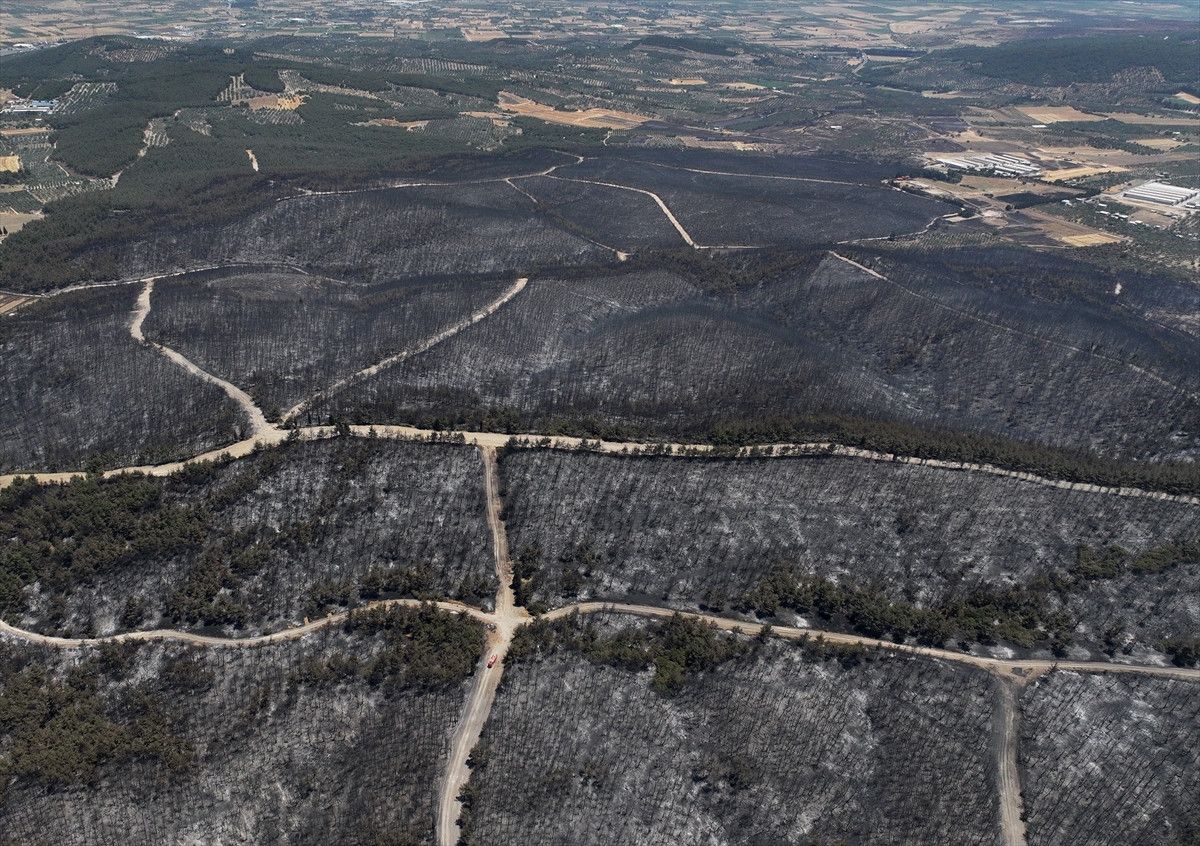 İzmir’de yangından sonra küle dönen orman havadan görüntülendi