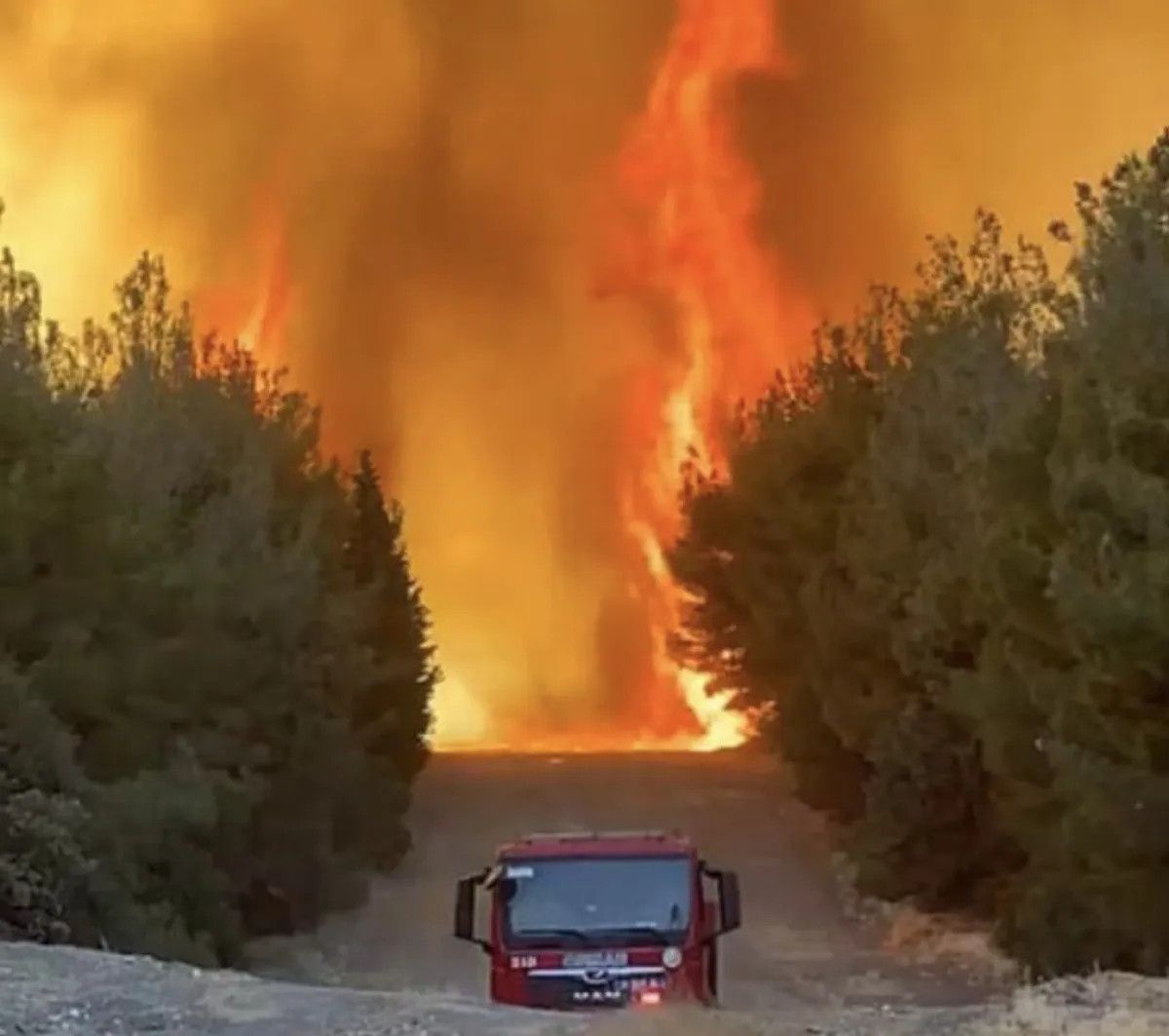 Görüntülerde, ormanlık alanın alevler nedeniyle siyaha bürünmesi yer aldı.