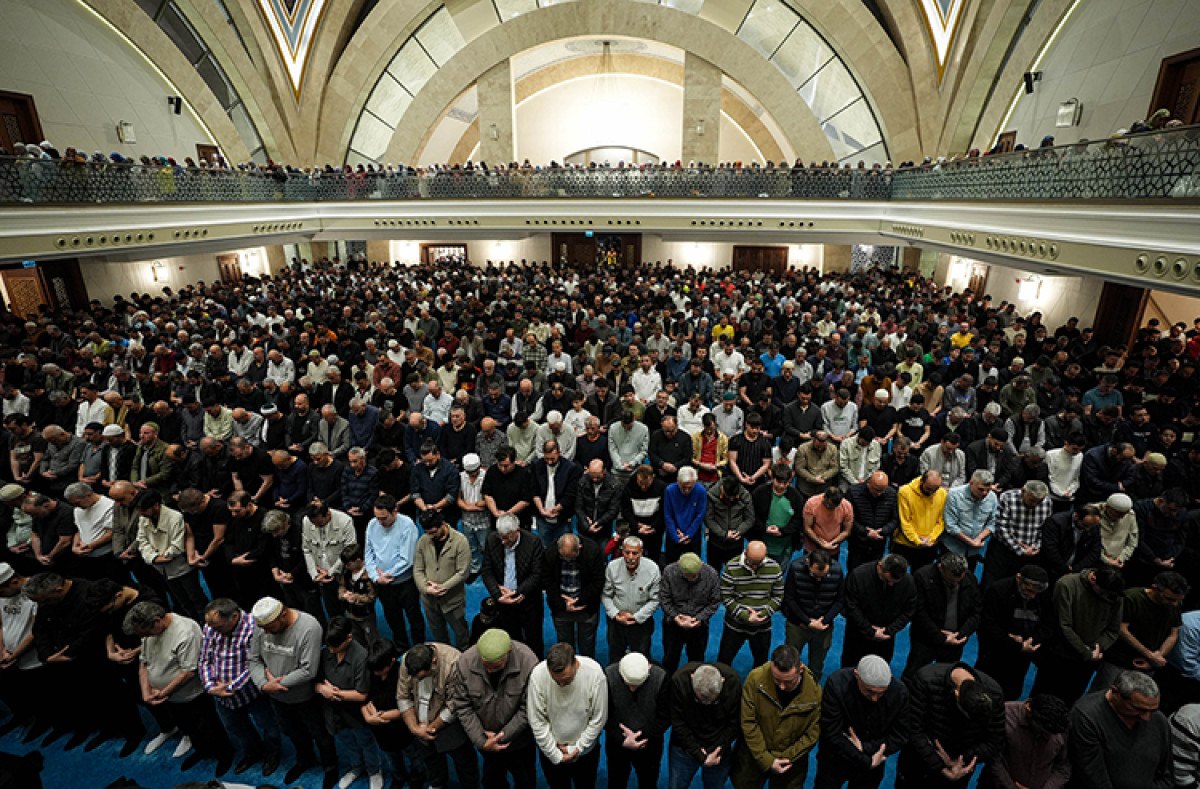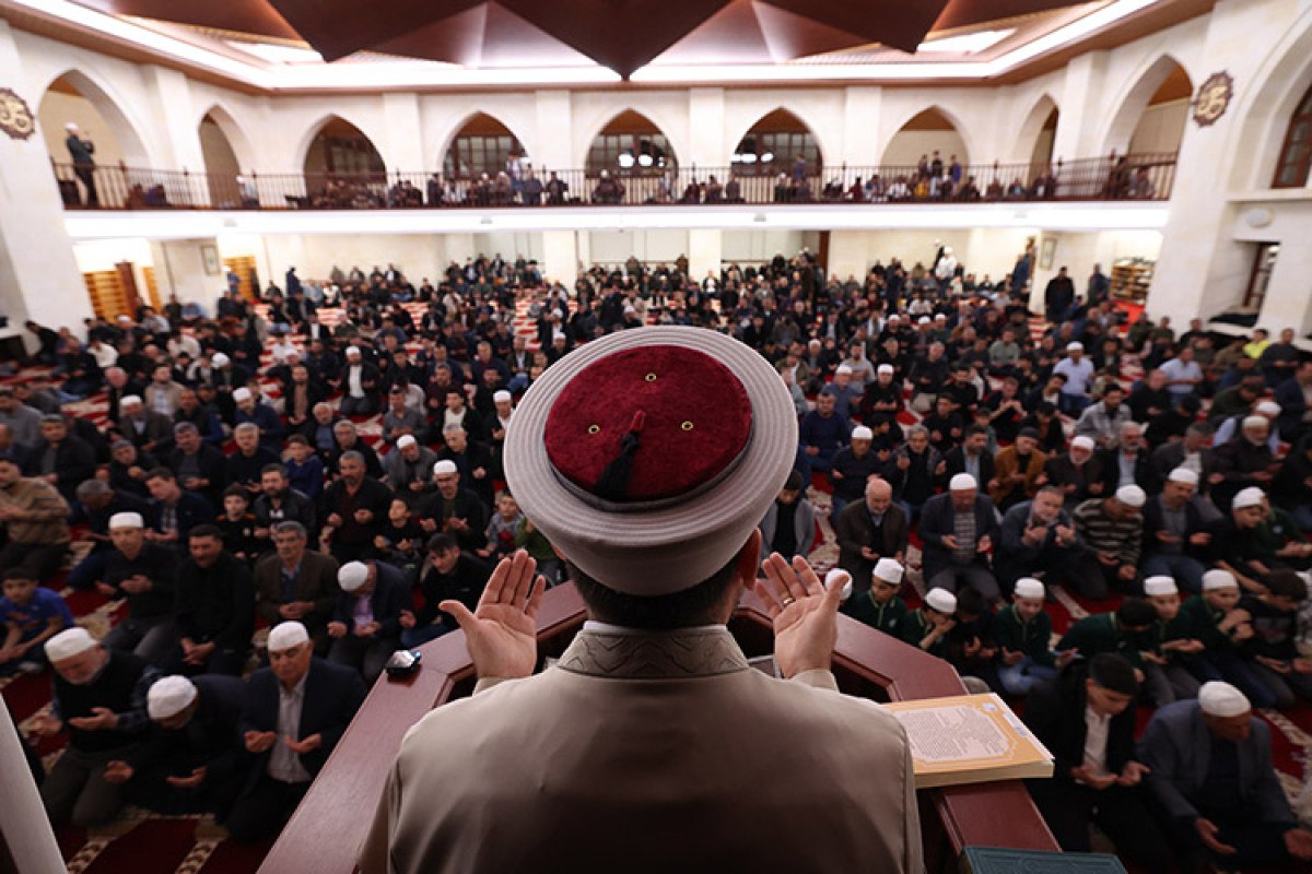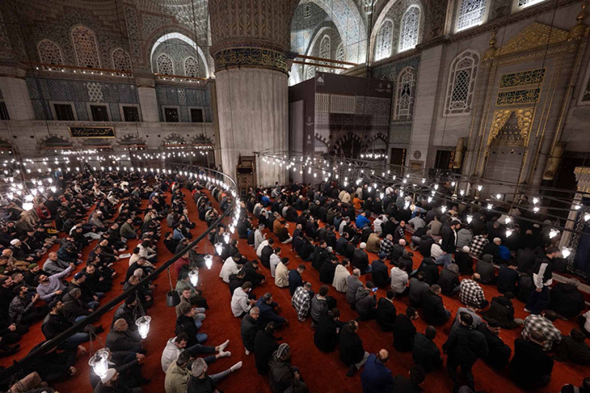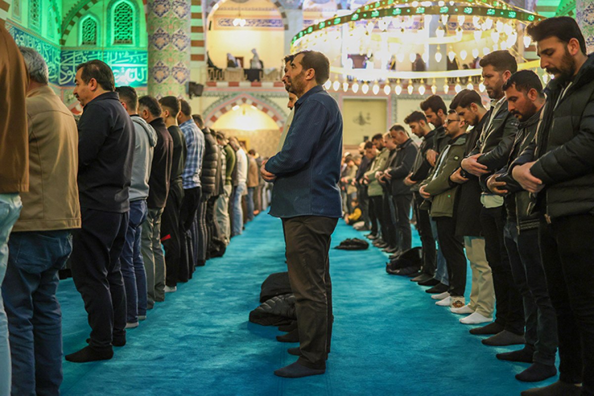 Yatsı ezanı öncesi camide Kur’an-ı Kerim okundu, dualar edildi. Genç-yaşlı, kadın-erkek binlerce kişi el açarak yapılan dualara hep birlikte “amin” dedi.