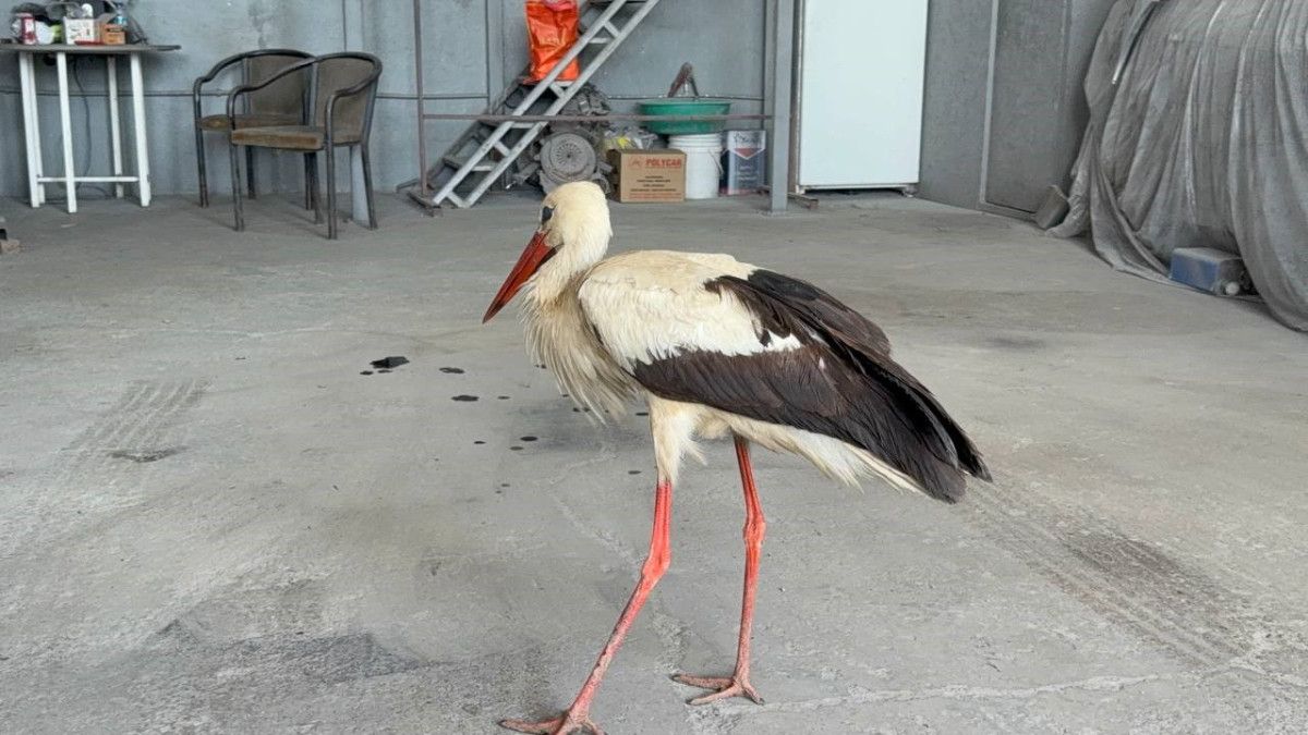 Veteriner hekimler tarafından yapılan ilk incelemede, leyleğin uzun süre aç ve susuz kaldığı, bu nedenle bitkin düştüğü tespit edildi.