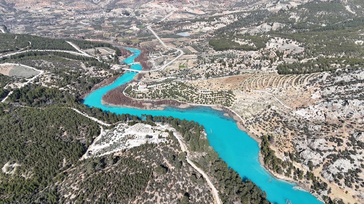 Karaman’da Göksu Nehri, turkuaz rengiyle büyülüyor