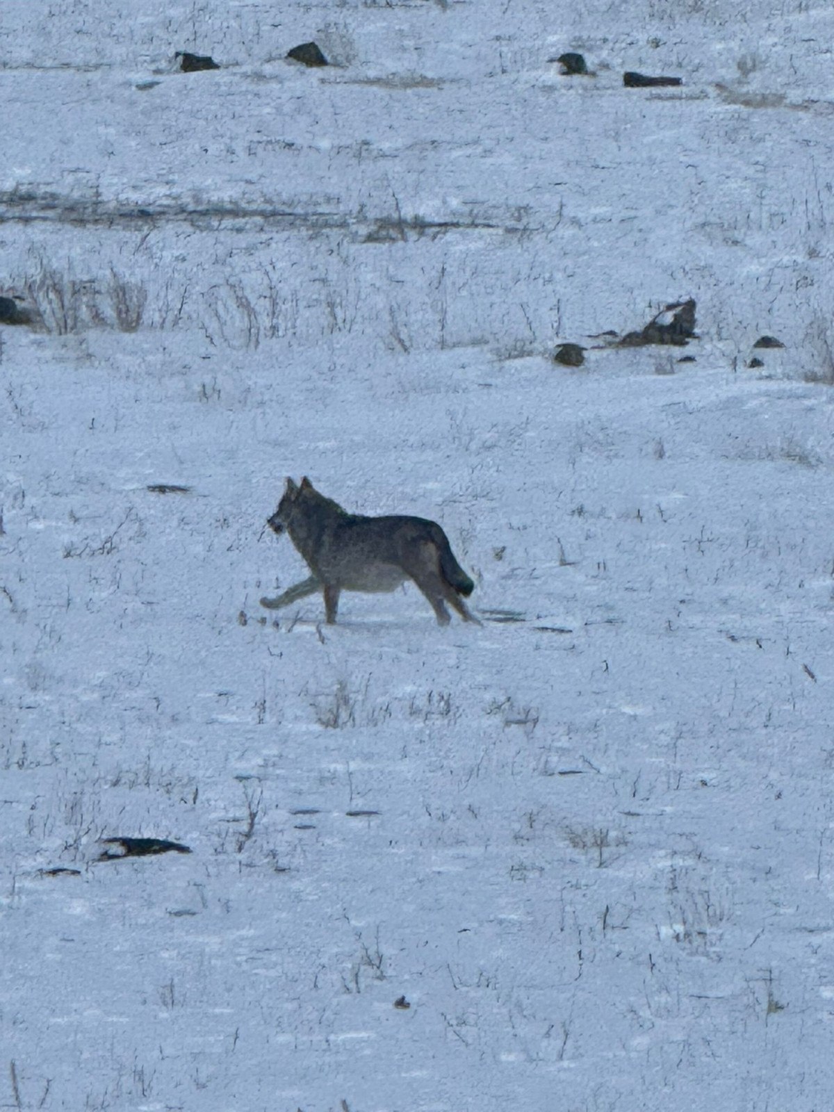 Kars Merkez Ölçülü köyü yakınlarına kadar inen kurt, tur operatörü Şentürk Güç, tarafından fark edildi.