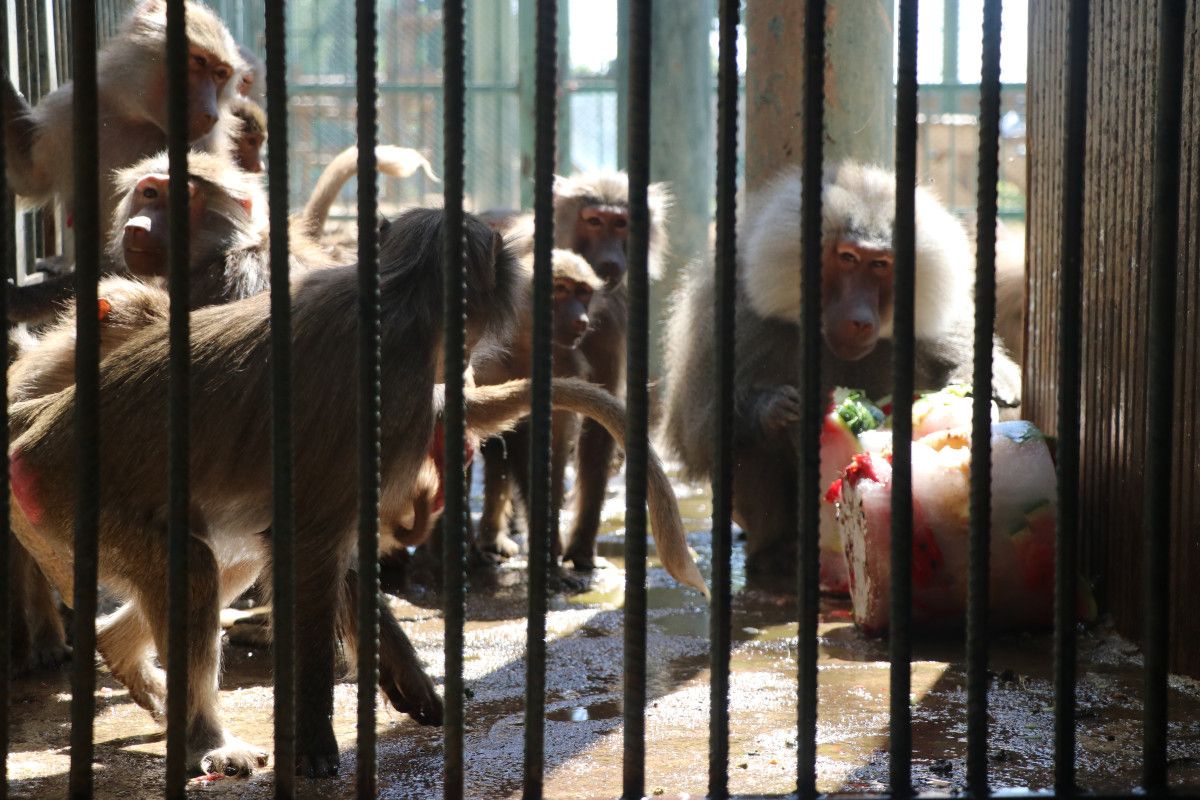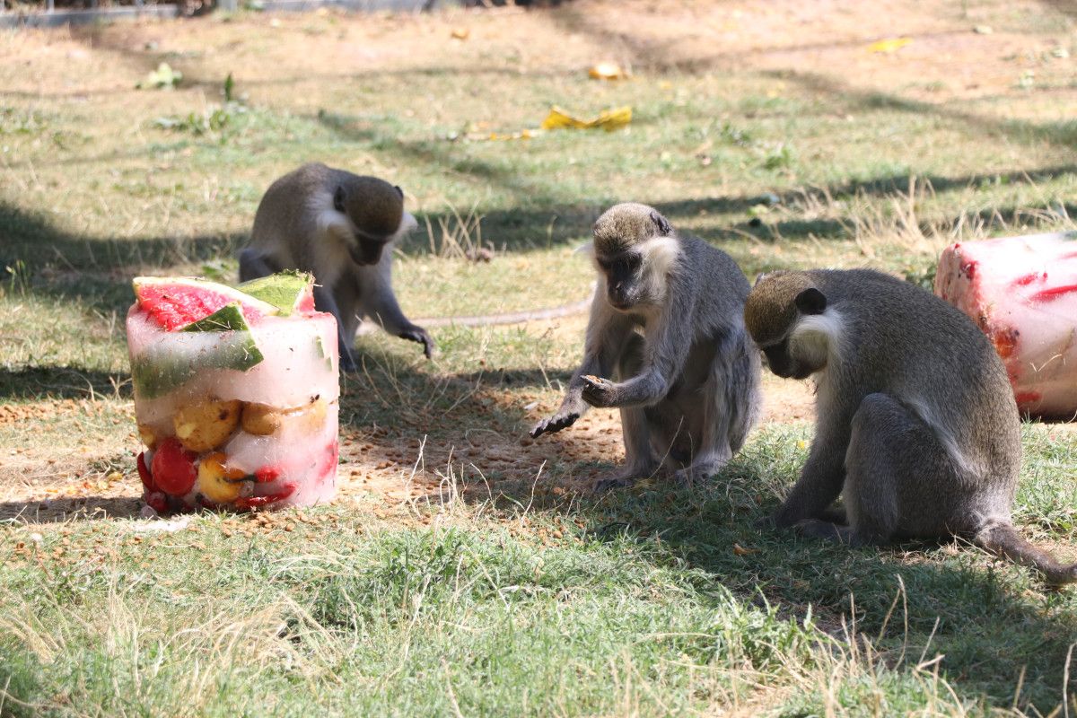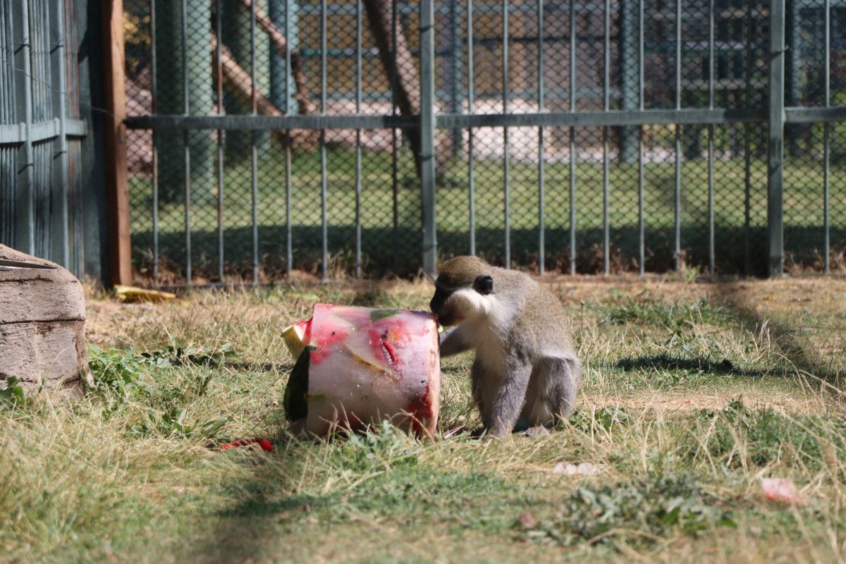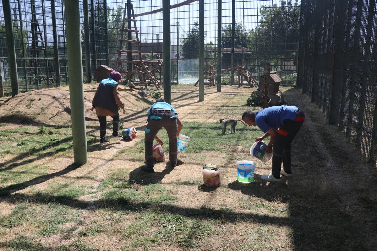 Bu halde hayvanların serinlemesine yardımcı oluyoruz. Barınaklarda iklimlendirme çalışması yapıyoruz. Buzlu kokteylimizin içinde mevsim meyveleri; kavun, karpuz, üzüm var. Maymunlar bu biçimde serinlemiş oluyor. Beslenmelerinde serinlemelerine katkı sağlıyoruz. İştahlı formda bunları tüketiyorlar. Biz de onlar serinledikçe memnun oluyoruz. Onlar da bu durumdan çok mutlular.” diye konuştu.