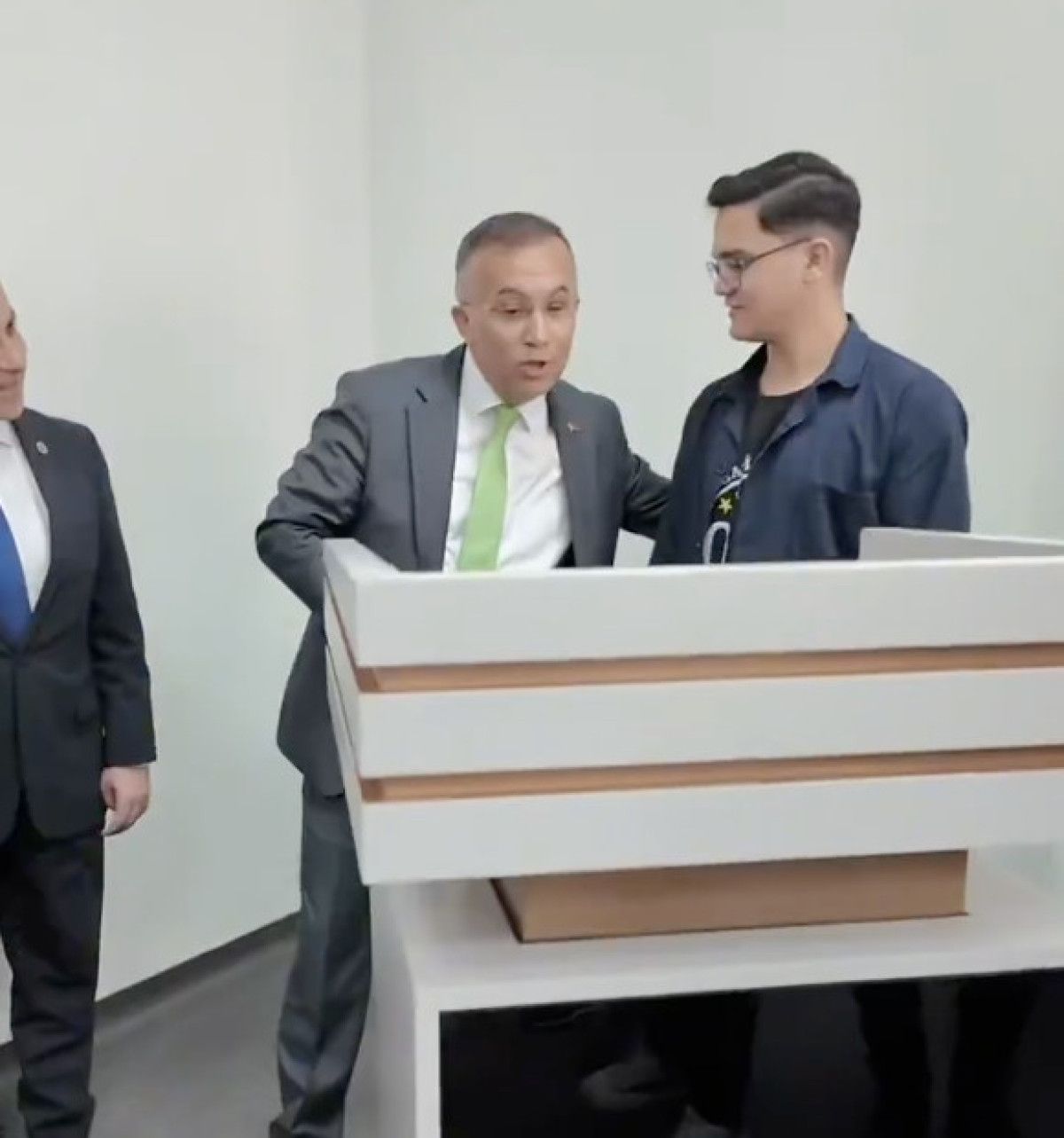 Boyu kısa protokol üyelerinin de dikkate alınarak şakayla karışık en azından boyu ayarlanabilir kürsü önerisinde bulunan Çeber’in bu isteği, bir lise öğrencisi tarafından dikkate alındı.
