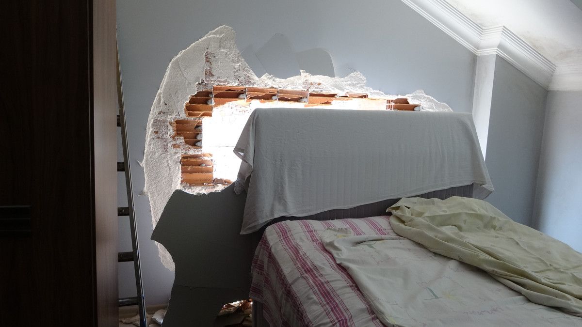 Dün akşam gelip birden burayı yıkmaya başladılar. Saat 1 civarıydı; sabaha kadar uyuyamadık. Konutumun her tarafı yıkıldı. Yatak odası, kolonlar ve çatıda hasar var. Öğrendiğime nazaran özel bir firma yapıyormuş.