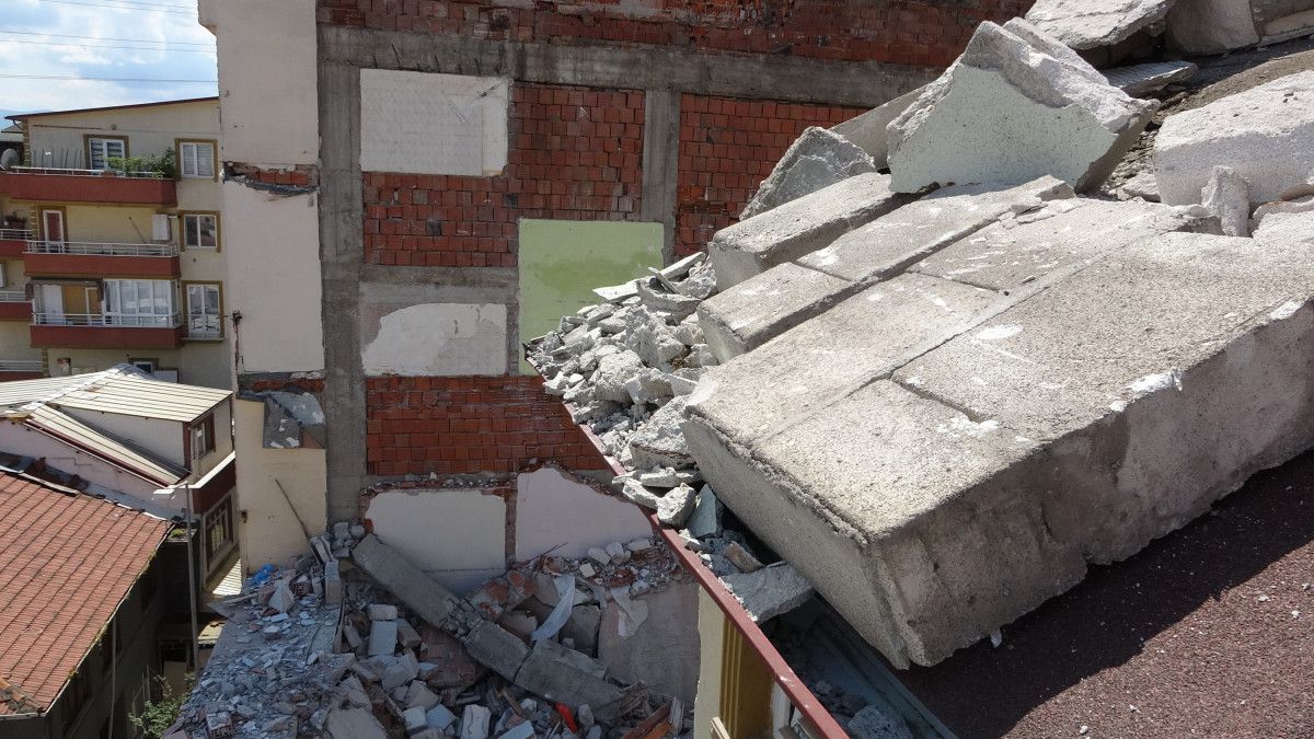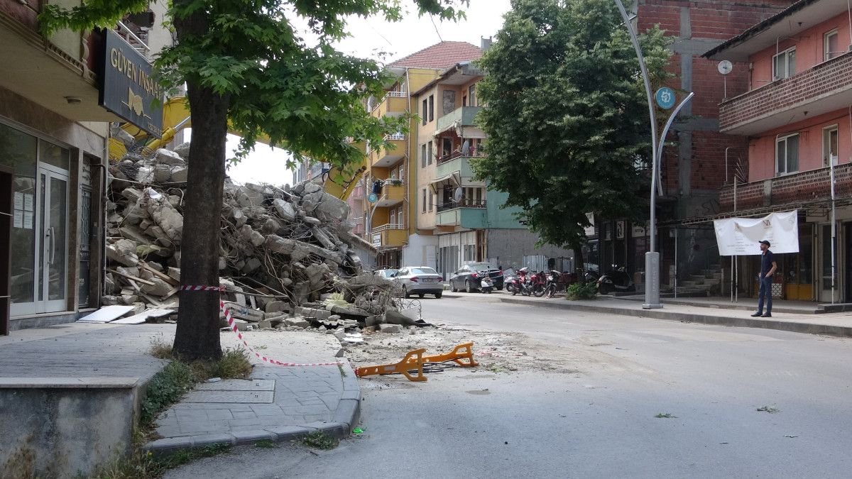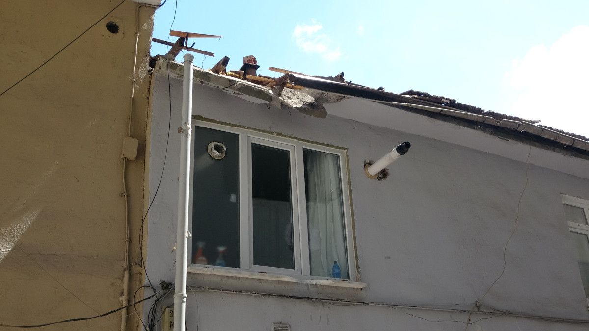 Ayrıca yıkılan binadan düşen kesimler gerideki sokakta bulunan 2 katlı müstakil konutun çatısına düştü.