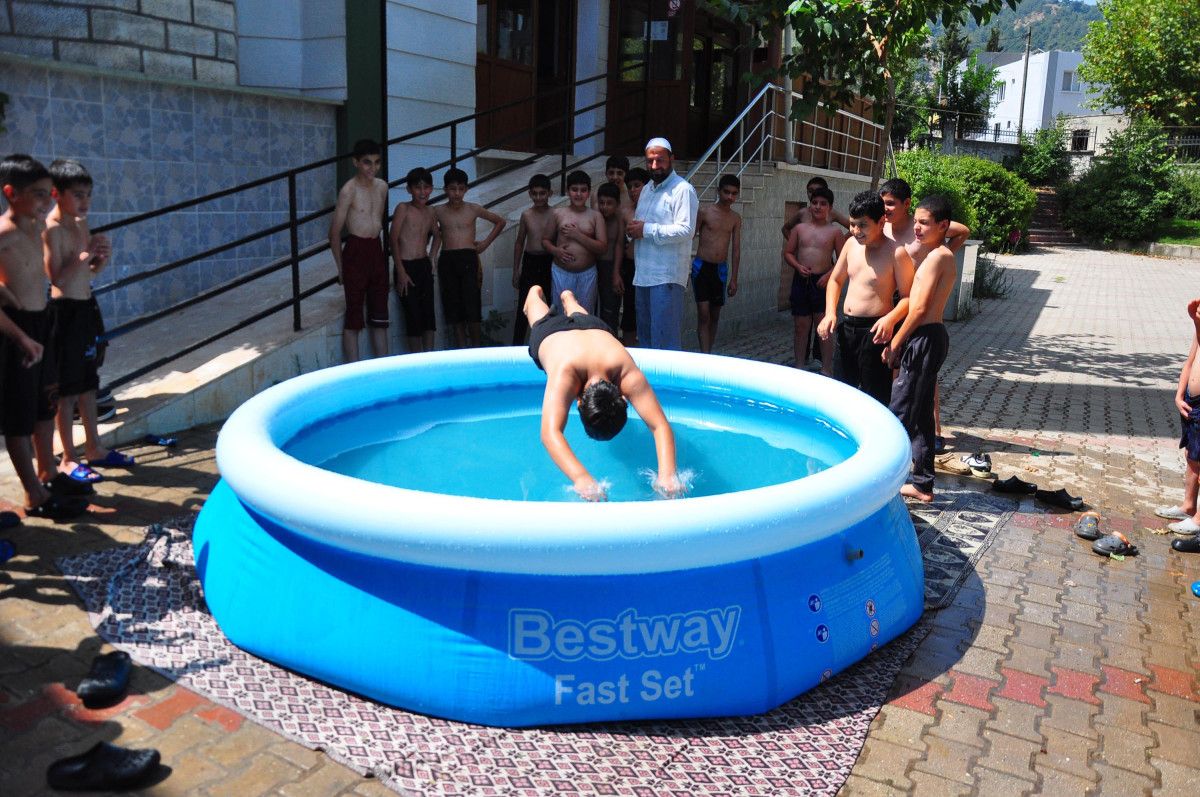 Bir öteki öğrenci Muhammed Abdullah Kılıç da “Büyük havuzlara gitmek isterdik ancak imkanımız olmadığı için hocamız bu havuzu getirdi. Çok sevindik” diye konuştu.