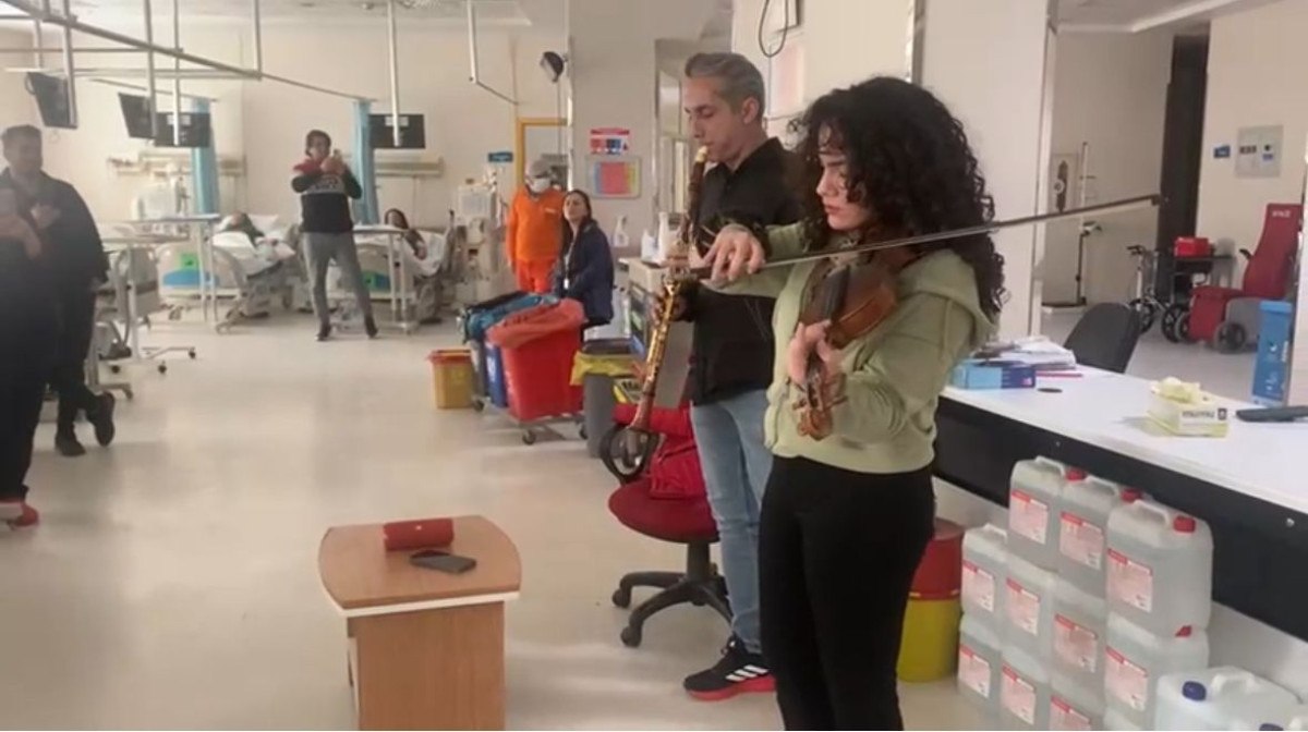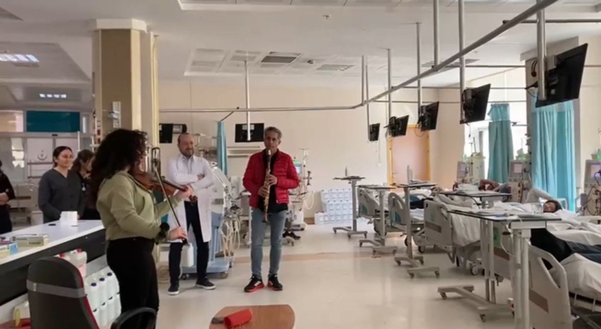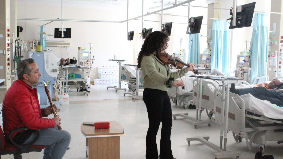 Mardin’in Nusaybin ilçesindeki Devlet Hastanesi’nde, diyaliz hastalarına yönelik yapılan bir etkinlikte müziğin stres üzerindeki olumlu etkisi gözler önüne serildi. Etkinlikte, müzisyen Ferhat Badur klarnetiyle, kızı Yağmur ise kemanı ile sahne aldı.