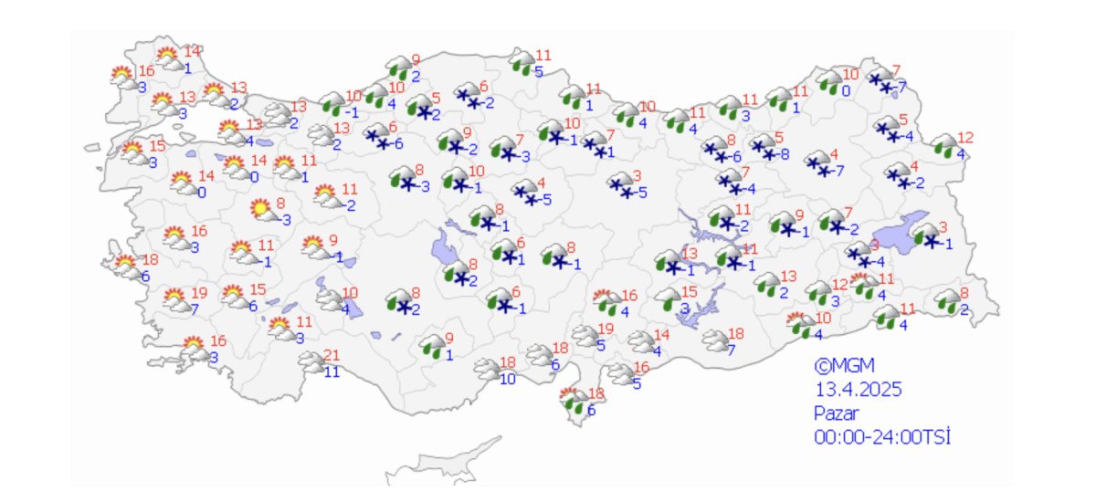 İç Anadolu (Konya ve Eskişehir hariç), Batı ve Orta Karadeniz, Doğu Anadolu, Güneydoğu Anadolu’nun kuzey ve doğusu ile Sakarya, Giresun, Trabzon, Antalya’nın doğu ilçeleri, Hatay, Kahramanmaraş, Gaziantep ve Kilis çevreleri ve Osmaniye’nin doğu kesimleri yağışlı geçecek.