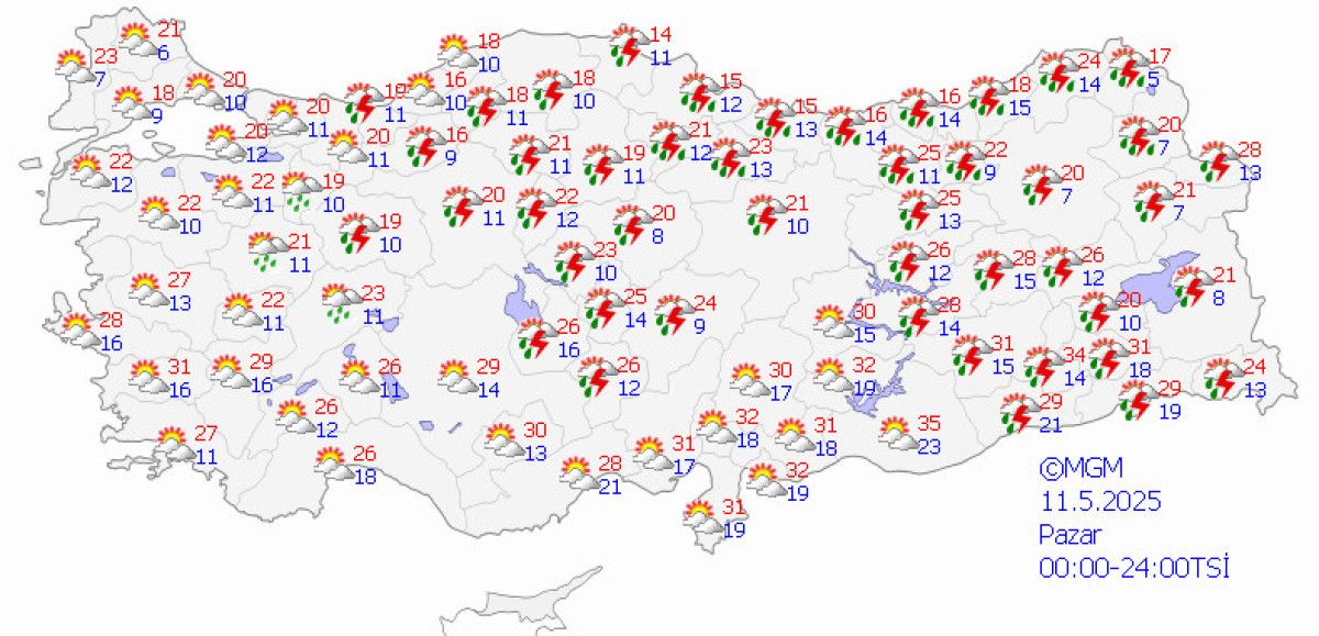 Bazi vilayetlerde bugün beklenen hava durumu şöyle: