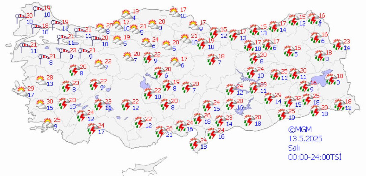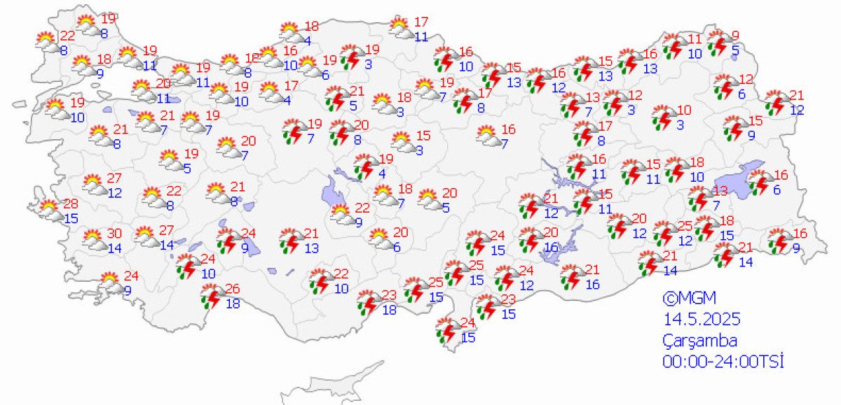 Meteoroloji Genel Müdürlüğü tarafından yapılan iddialara nazaran; yurt genelinde modüllü ve çok bulutlu, Doğu Akdeniz’in Toroslar mevkii, İç Anadolu (Konya’nın güneyi ve Karaman hariç), Karadeniz, Doğu Anadolu, Güneydoğu Anadolu’nun doğusu ile Bilecik, Sakarya, Bursa’nın doğusu, Kütahya, Uşak, Afyonkarahisar, Adana ve Isparta etraflarının lokal olmak üzere aralıklı sağanak ve gök gürültülü sağanak yağışlı geçeceği kestirim ediliyor.