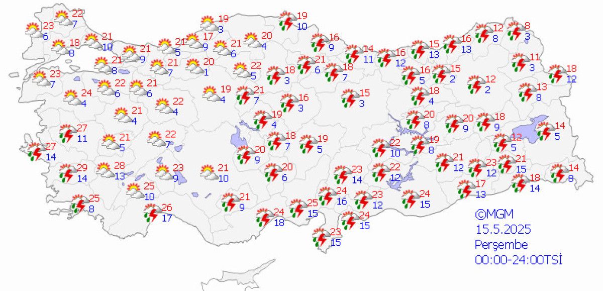 Meteoroloji Genel Müdürlüğü, yeni hava raporunu yayınladı.