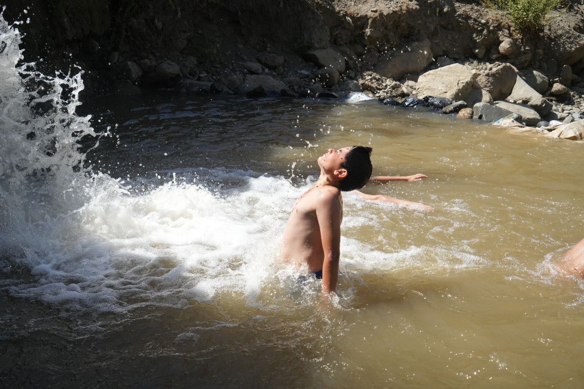 Kendi imkanlarıyla yaptıkları havuzda serinlediklerini söyleyen Üveyis Göçmen isimli çocuk,  “Kendi imkânlarımız ile göl yaptık. Burada serinleyerek günün tadını çıkarıyoruz. Hava çok sıcak serinlemek için buraya geliyoruz” dedi.