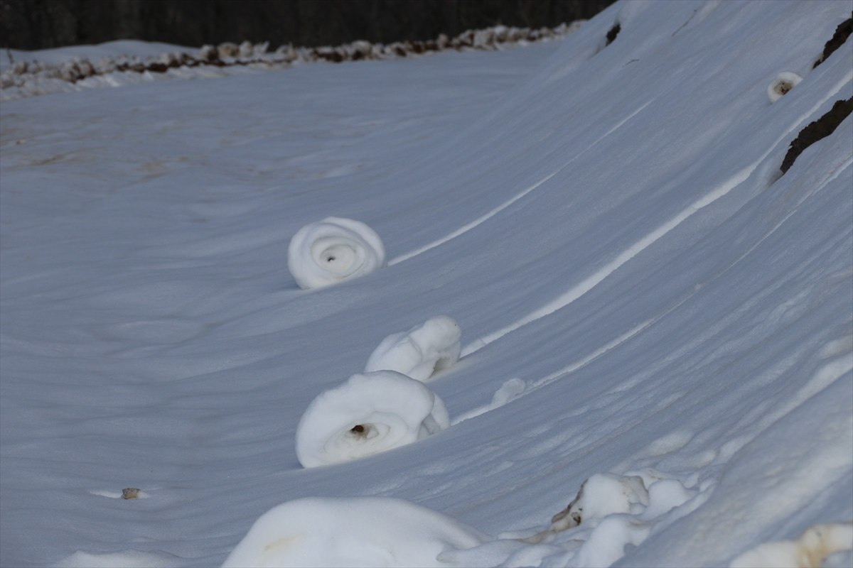 Kar rulolarının, rüzgarın zemindeki karı yüzeyden koparıp yuvarlamaya başlamasıyla oluştuğu tahmin ediliyor.
