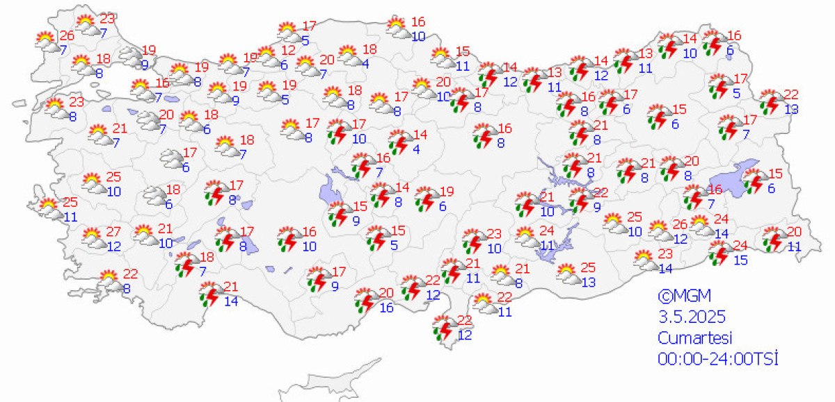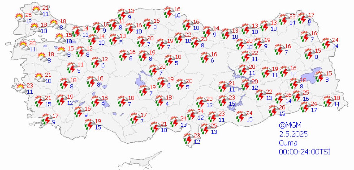 Meteoroloji Genel Müdürlüğü, son hava durumu raporunu yayınladı.