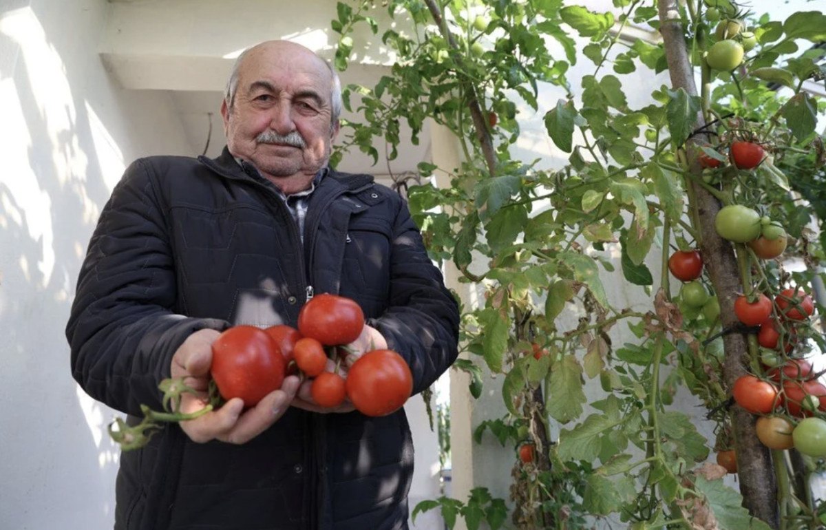 Bahçesinde yaptığı organik tarımda soğuk şartlarda domates ve marullarının yetişmediğini kaydeden Kaçmaz, bunun üzerine evinin çatı katındaki terasa kendine yetecek kadar sera inşa ettiğini aktardı.