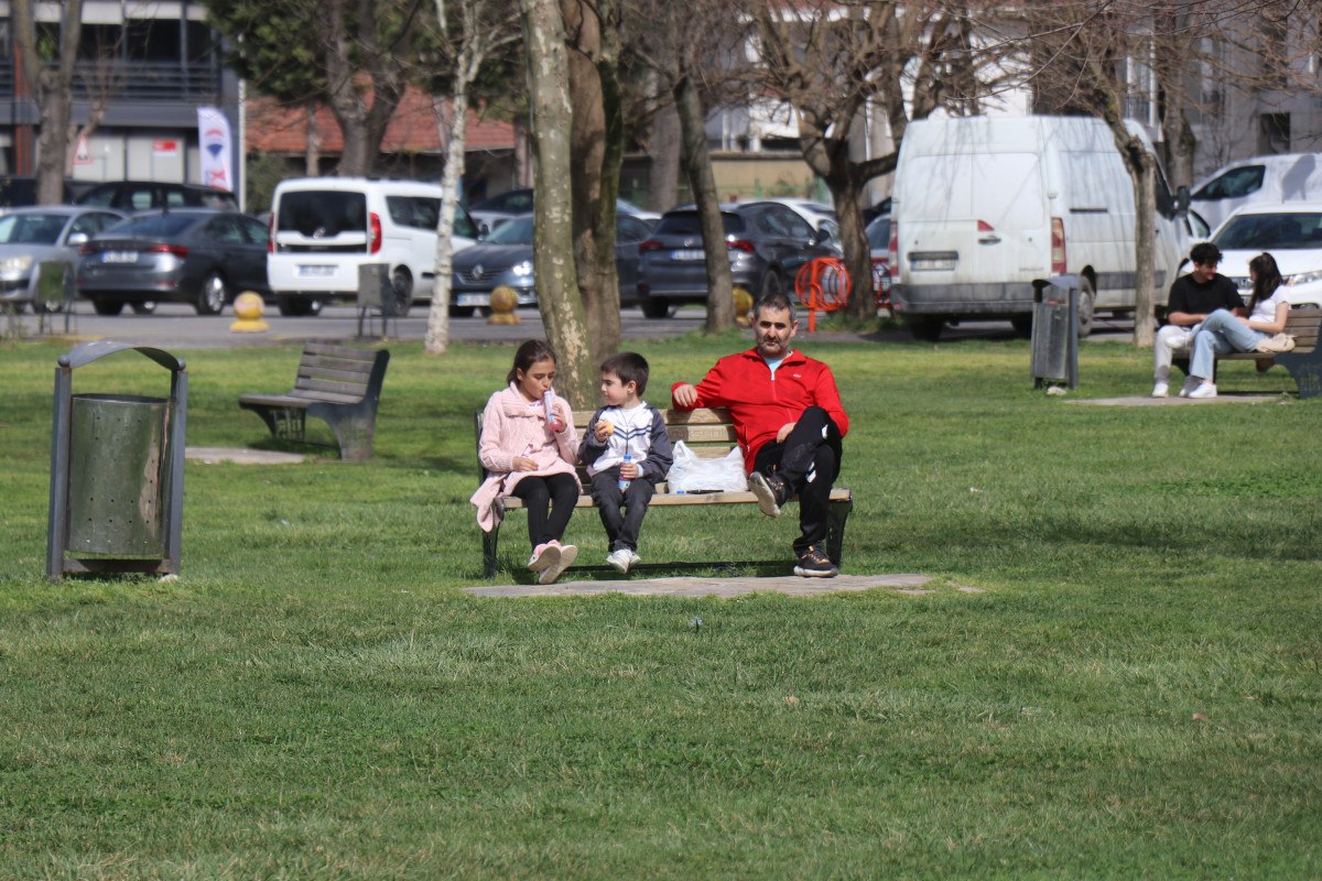 Sakarya’da Mart ayının ortasında hava sıcaklıkları 28 dereceye kadar yükseldi. Mevsim normallerinin üzerinde seyreden sıcak havayı fırsat bilen vatandaşlar, dışarı çıkarak güneşin tadını çıkarmaya başladı.