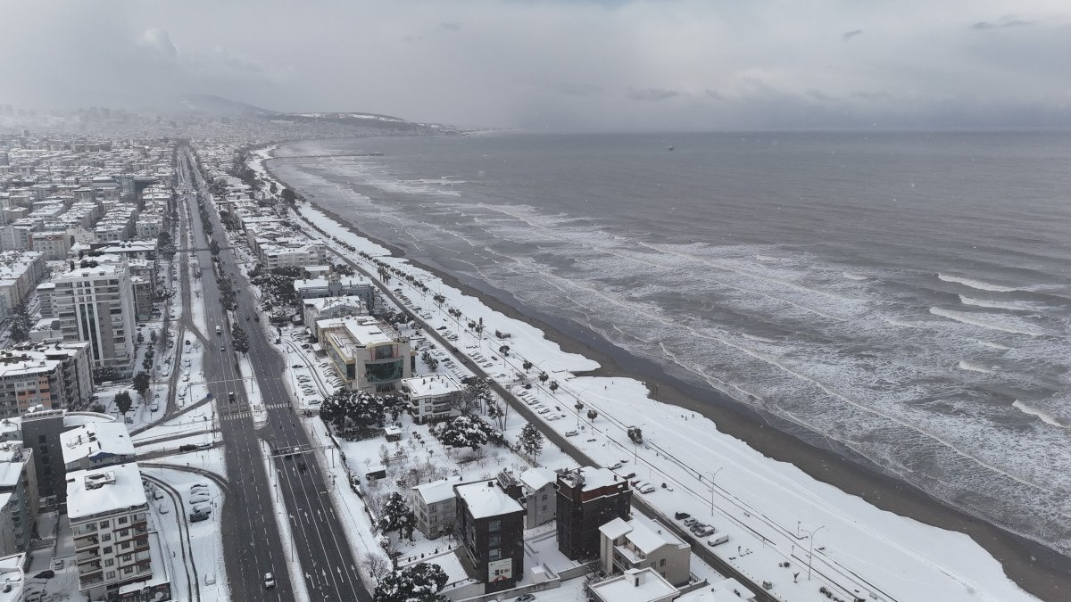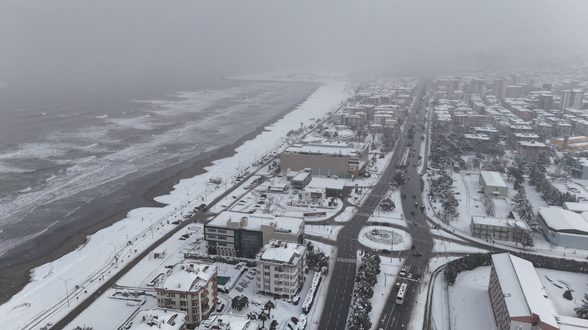 Kar yağışı ile birlikle kent sakinleri soluğu sahilde aldı.