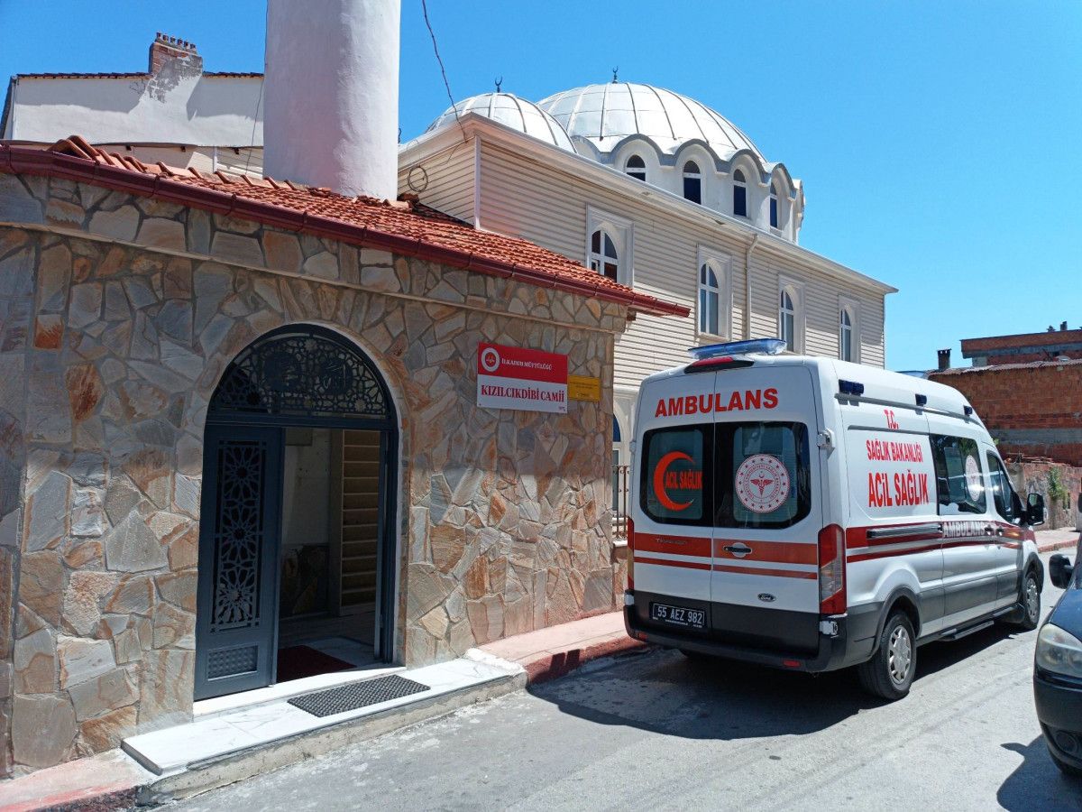 İlk müdahalesi cami içinde yapılan şahıs, sedyeyle ambulansa alınarak Gazi Devlet Hastanesi’ne kaldırıldı.