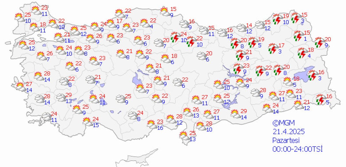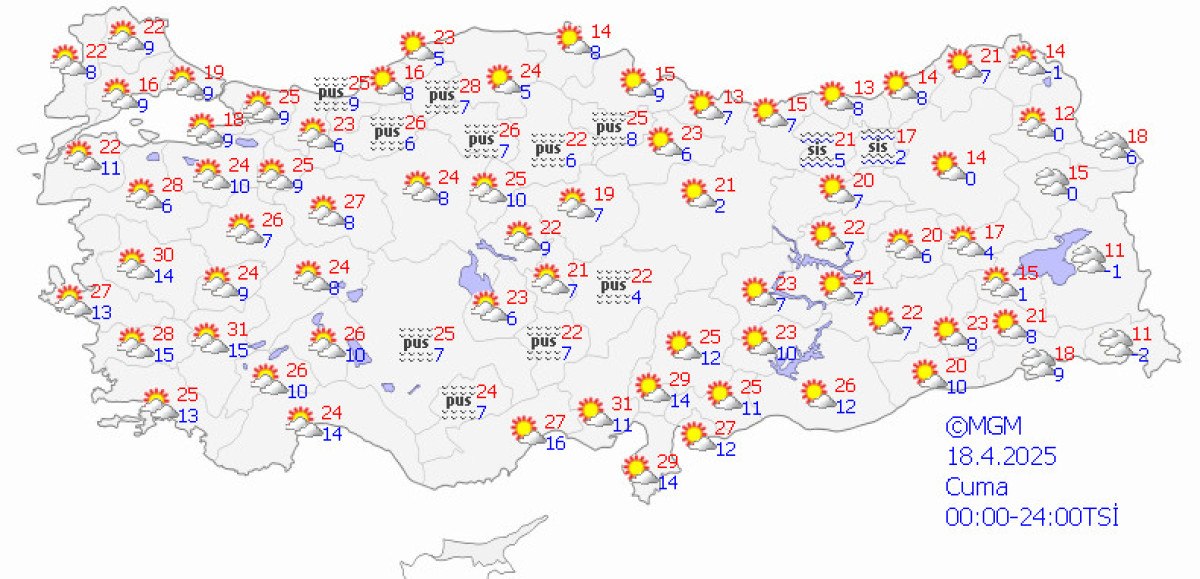 Meteoroloji Genel Müdürlüğü, son hava durumu raporunu yayınladı.