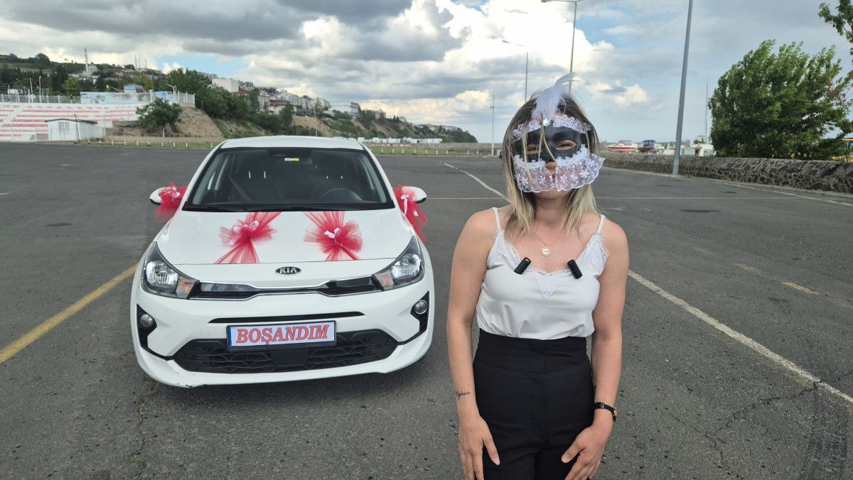 Toplumsal baskılardan çekindiği için yüzünü maske ile gizleyen E.D., aracın içinde ve dışında dans ederek yeni hayatını kutladı.