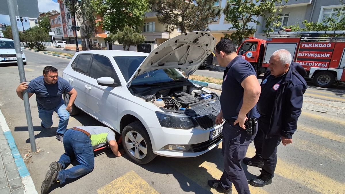 Tekirdağ’ın Süleymanpaşa ilçesinde, Cihat Ersöz, seyir halindeyken aracından kedi sesi geldiğini fark etti.