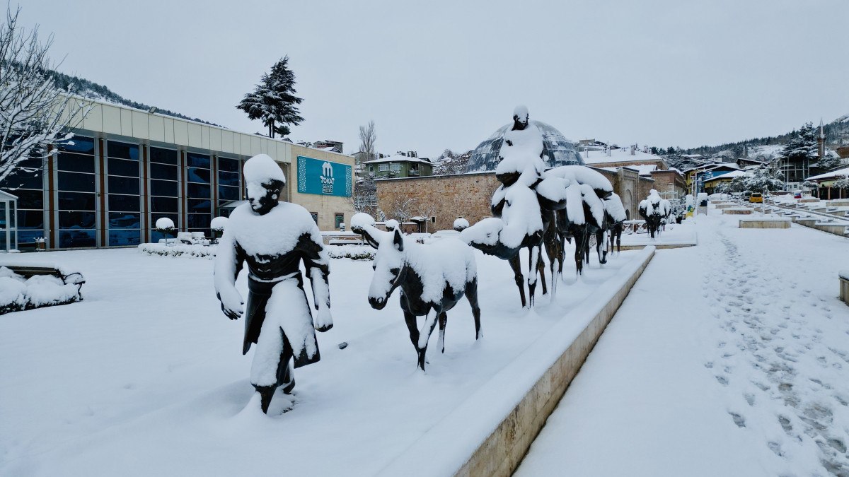 Karla kaplanan tarihi kent merkezi adeta kartpostallık manzara sundu.