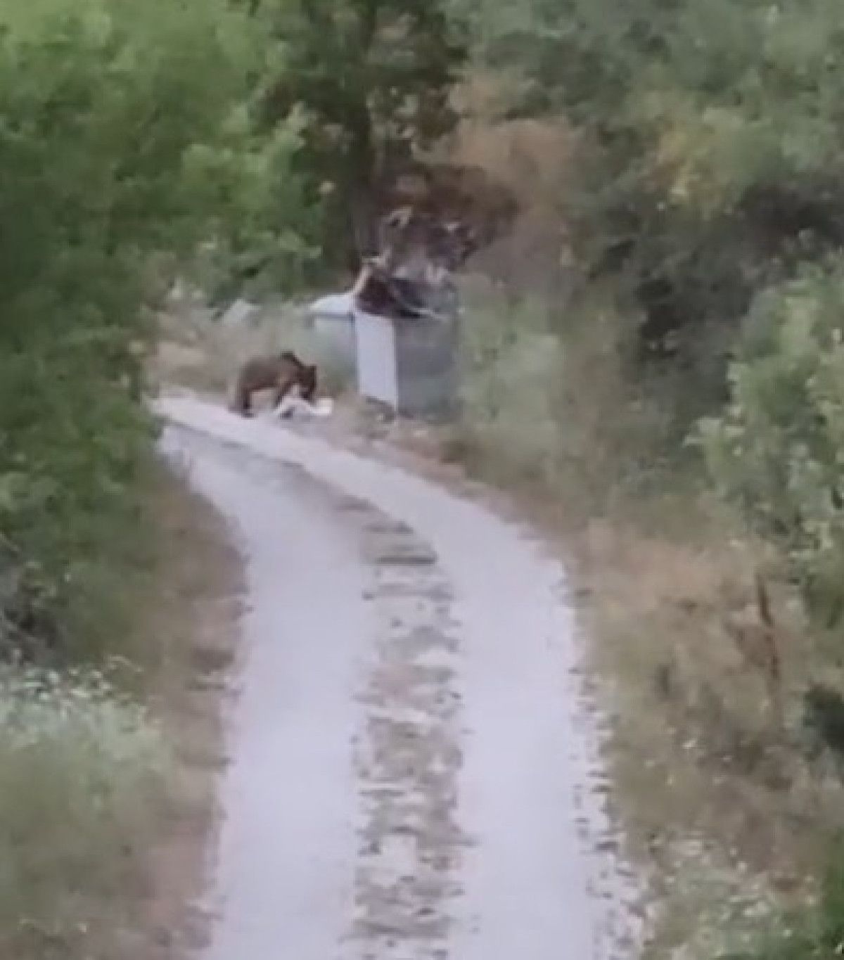 Reşadiye ilçesine bağlı Büşürüm Köyü, Karagömlek Mahallesi’nde ayılar aç kalınca, yiyecek bulmak için çöp konteynerlerine yöneldi.