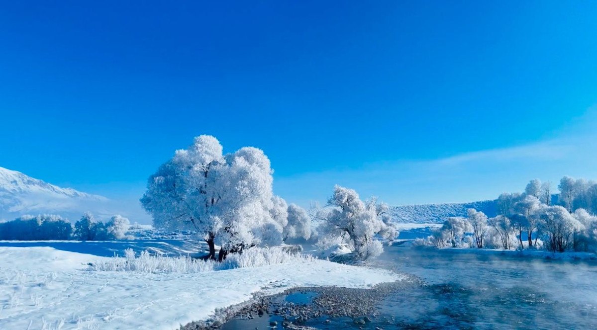 Karla kaplı dağların, kırağıyla beyaza bürünmüş ağaçların, gökyüzüyle ve ilçeden doğan Munzur Nehri ile oluşturduğu manzara havadan görüntülendi. Bölgedeki güzel görüntüler de ilgi çekti.