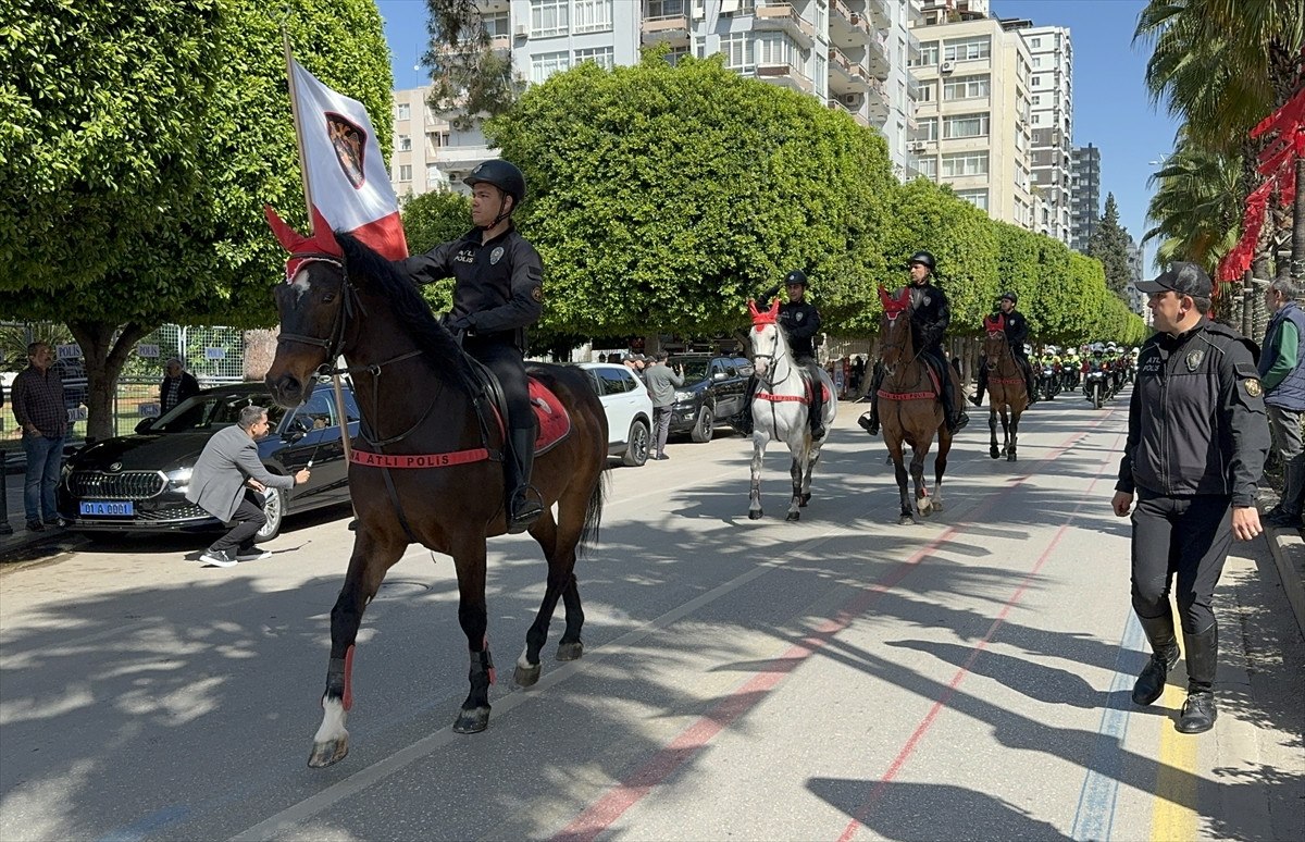 Daha sonra çeşitli polis araçlarından oluşan kortej Atatürk Caddesi’nden geçiş yaptı. Geçişe atlı polis ekibi de katıldı.
