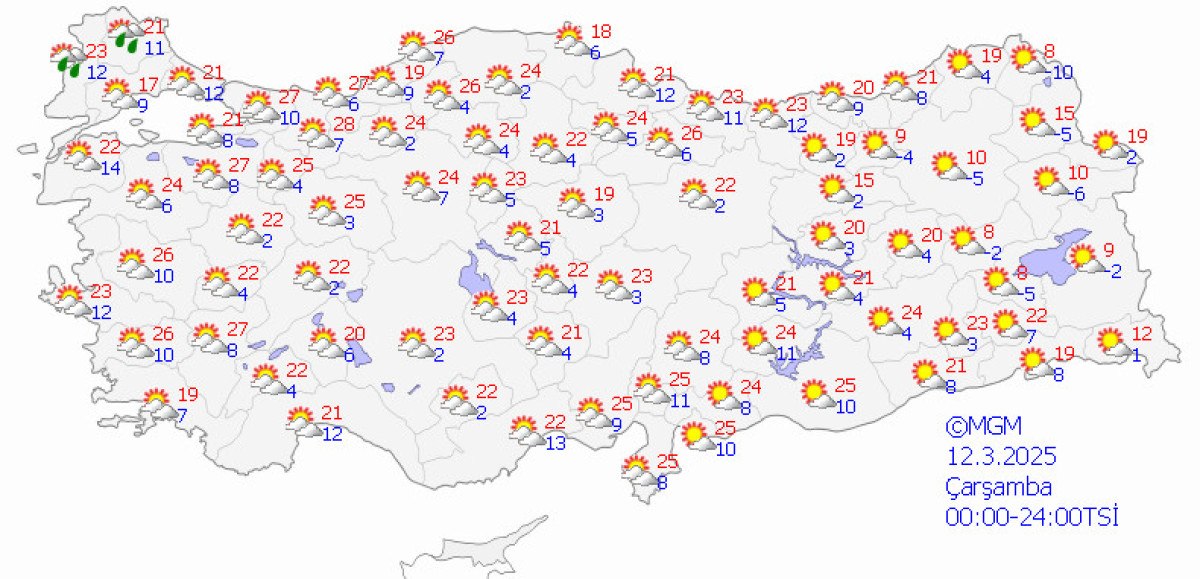 Meteoroloji Genel Müdürlüğü, son hava durumu raporunu yayınladı.