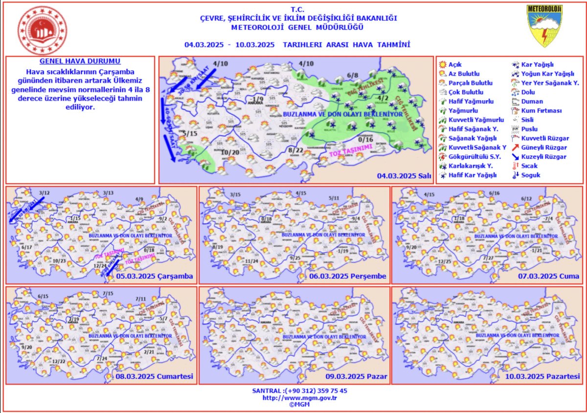 Meteoroloji Genel Müdürlüğü, haftalık hava durumu raporunu yayınladı.