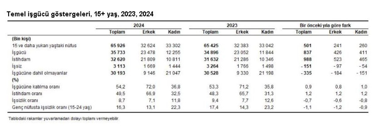 Türkiye İstatistik Kurumu, 2024 yılına ait iş gücü istatistiklerini açıkladı.