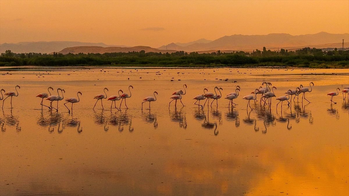 Havaların ısınmasıyla konaklamak için Van Gölü Havzası’na gelen binlerce flamingo, iri gövdeleri, şık boyunları ve uzun bacaklarıyla ziyaretçilerin dikkatini çekiyor.