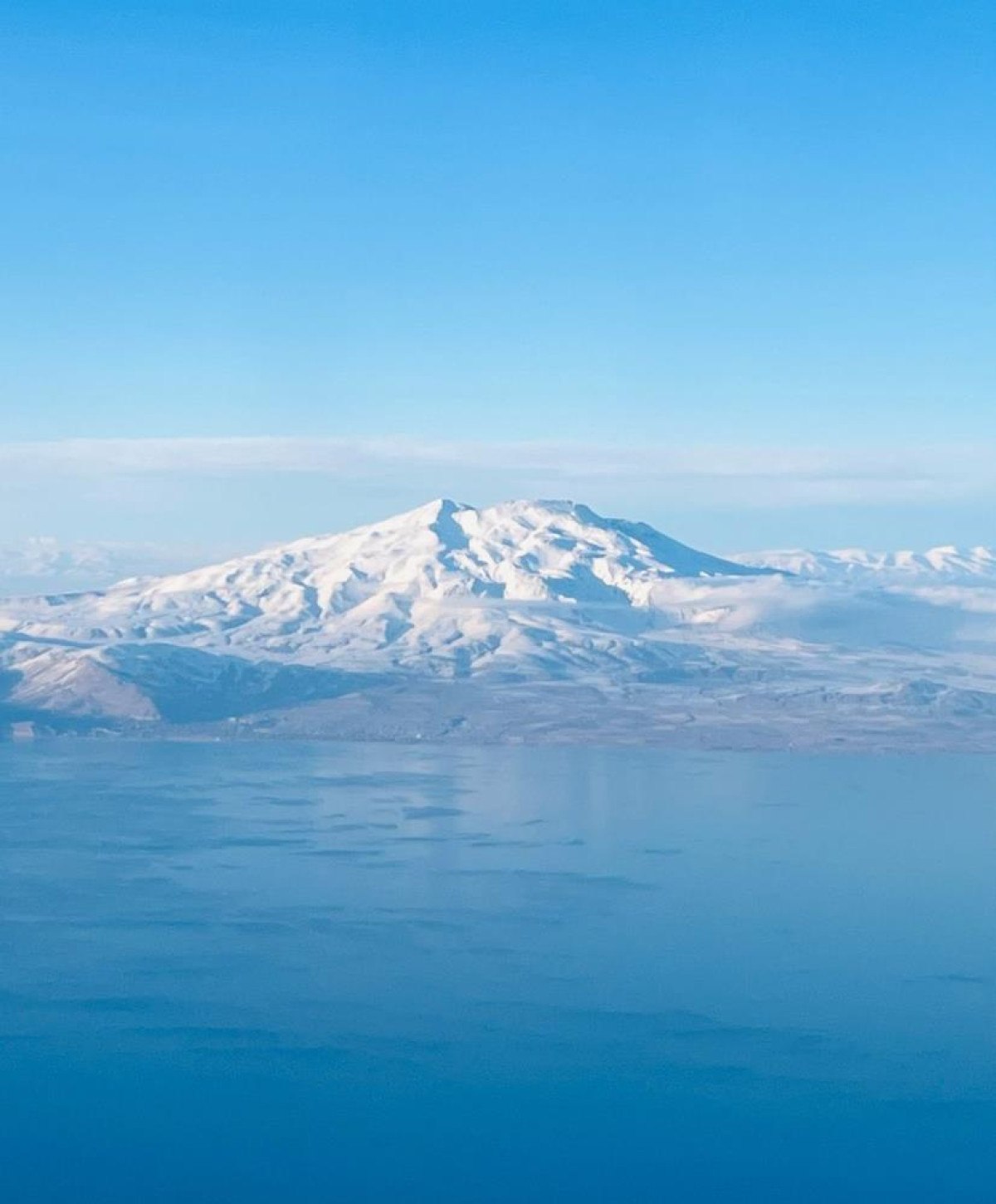 İstanbul-Van seferini yapan yolcu uçağındaki bir yolcu, Van Gölü Havzası’ndaki yerleşim alanlarını uçağın penceresinden cep telefonu ile kaydetti.