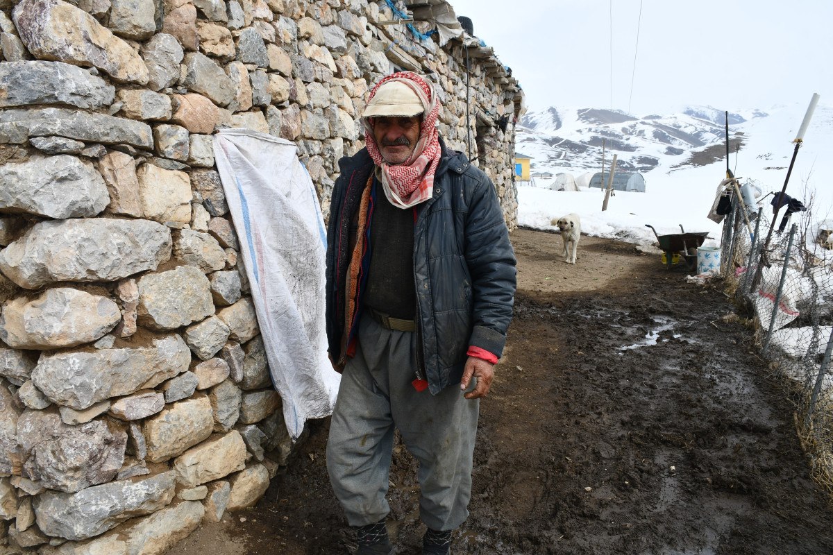 Şırnak’ın Beytüşşebap ilçesine bağlı Yeşilöz köyündeki Faraşin Yaylası’nda kalan 65 yaşındaki Abdulmenav Aslan, ailesi Van’da kalırken kendisi 9 yıldır 60 küçükbaş hayvanıyla 2 odalı kerpiç evde yaşıyor.